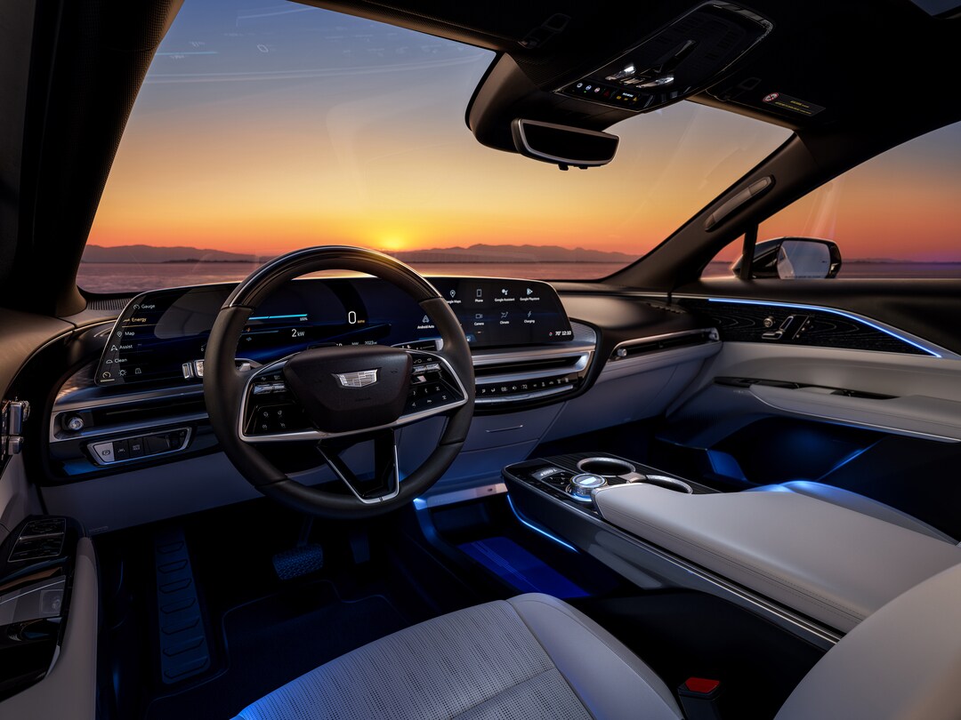 The curved LED display spans across the dashboard, providing intuitive access to navigation, entertainment, and vehicle settings. Premium audio systems deliver high-quality sound, while ambient lighting options allow you to customize the cabin atmosphere to match your mood. The spacious interior offers generous legroom, making the Cadillac LYRIQ suitable for both daily commuting and weekend adventures with family and friends.