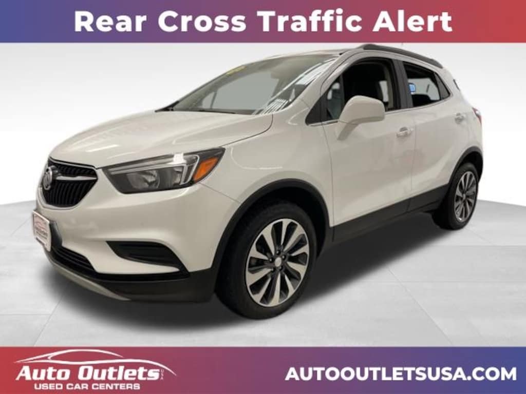 ONE OWNER, LOW MILEAGE, BLUETOOTH, USB & AUX PORT, BACK UP CAMERA, BLUETOOTH AUDIO, WIFI CAPABLE, POWER OUTLET, REAR CROSS TRAFFIC ALERT, BLIND SPOT MONITOR, BUICK INTELLILINK, ANDROID AUTO, APPLE CAR PLAY, ONSTAR CAPABLE, XM RADIO CAPABLE, 911 ASSIST, KEYLESS ENTRY, PUSH BUTTON START, TOUCH SCREEN DISPLAY, LEATHER SEATING, DRIVER'S POWERED SEAT, REMOTE START, 120-Volt Power Outlet, 18" Aluminum Wheels, 2-Way Manual Front Passenger Seat Adjuster, 3.53 Final Drive Axle Ratio, 4-Wheel Disc Brakes, 6-Speaker Audio System, 6-Way Power Driver Seat Adjuster, ABS brakes, Air Conditioning, All-Weather Floor Mats, AM/FM radio: SiriusXM, Apple CarPlay/Android Auto, Brake assist, Buick Interior Protection Package (LPO), Bumpers: body-color, Cloth w/Leatherette Seat Trim, Color-Keyed Carpeted Cargo Mat (LPO), Compass, Delay-off headlights, Driver door bin, Driver vanity mirror, Driver's Seat Mounted Armrest, Dual front impact airbags, Dual front side impact airbags, Electronic Stability Control, Emergency communication system: OnStar and Buick connected services capable, Exterior Parking Camera Rear, Front anti-roll bar, Front Bucket Seats, Front License Plate Bracket, Front reading lights, Front wheel independent suspension, Fully automatic headlights, Heated door mirrors, Illuminated entry, Knee airbag, Leather steering wheel, Low tire pressure warning, Occupant sensing airbag, Outside temperature display, Overhead airbag, Panic alarm, Passenger door bin, Passenger vanity mirror, Power door mirrors, Power driver seat, Power steering, Power windows, Preferred Equipment Group 1SB, Radio data system, Radio: 7" Diagonal Buick Infotainment System, Rear Cross Traffic Alert, Rear seat center armrest, Rear side impact airbag, Rear window defroster, Rear window wiper, Remote keyless entry, Remote Vehicle Starter System, Ride & Handling Suspension, Roof rack: rails only, Safety Package, Security system, Side Blind Zone Alert, Speed control, Speed-sensing steering, Split folding rear seat, Spoiler, Steering wheel mounted audio controls, Tachometer, Telescoping steering wheel, Tilt steering wheel, Traction control, Trip computer, Variably intermittent wipers. Summit White 2022 Buick Encore Preferred AWD 6-Speed Automatic Electronic with Overdrive 1.4L ECOTEC Turbo VVT DOHC 4-Cyl SIDI