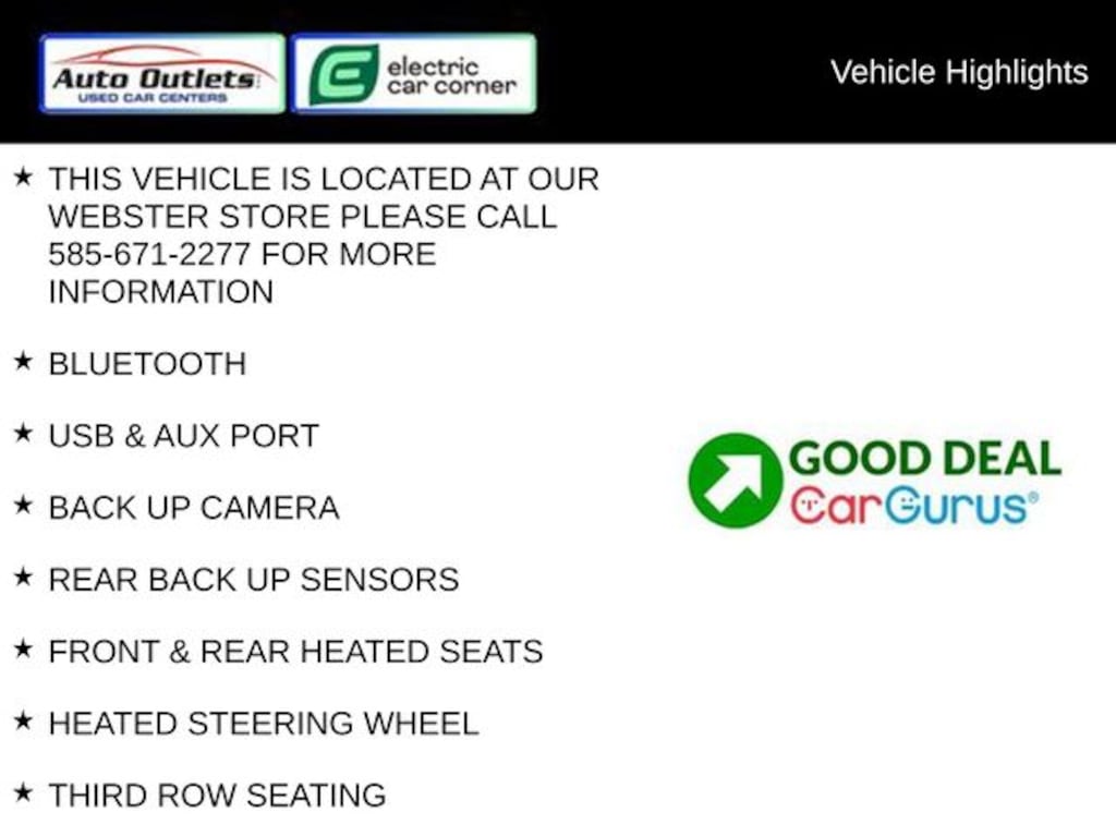 THIS VEHICLE IS LOCATED AT OUR WEBSTER STORE PLEASE CALL 585-671-2277 FOR MORE INFORMATION, BLUETOOTH, USB & AUX PORT, BACK UP CAMERA, REAR BACK UP SENSORS, FRONT & REAR HEATED SEATS, HEATED STEERING WHEEL, THIRD ROW SEATING, SUNROOF, LANE ASSIST, REAR CROSS TRAFFIC ALERT, FORWARD COLLISION WARNING, BLIND SPOT MONITOR, ANDROID AUTO, APPLE CAR PLAY, ONSTAR CAPABLE, BOSE PREMIUM SOUND SYSTEM, TOUCH SCREEN DISPLAY, DRIVER'S AND PASSENGER'S POWERED SEAT, DRIVER'S MEMORY SEAT, 8 SEATER, 4WD, Jet Black/Dark Ash Leather, 18" x 8.5" Aluminum Wheels, 1st & 2nd Row Color-Keyed Carpeted Floor Mats, 2nd Row 60/40 Split-Folding Manual Bench, 2nd Row Pwr Release 60/40 Split Folding Bench Seat, 3rd Row 60/40 Power Fold Split-Bench, 3rd Row Manual 60/40 Split-Folding Fold Flat Bench, 4-Wheel Antilock Disc Brakes w/Brake Assist, 5 12-Volt Auxiliary Power Outlets, Alloy wheels, Auto-Dimming Inside Rear-View Mirror, Black Assist Steps, Body Security Content Theft Protection Package, Bose Premium 9-Speaker System, Cargo Net, CD player, Color-Keyed Carpeting Floor Covering, Driver Inboard & Front Passenger Airbags, Electronic Cruise Control w/Set & Resume Speed, Enhanced Driver Alert Package (Y86), Extended-Range Remote Keyless Entry, Floor Console, Fog Lamps, Forward Collision Alert, Front & Rear Park Assist, Front Passenger 6-Way Power Seat Adjuster, Garage door transmitter, Hands Free Power Liftgate, Heated 2nd Row Seats, Heated Leather Wrapped Steering Wheel, Illuminated entry, IntelliBeam Headlamps, Lane Change Alert w/Side Blind Zone Alert, Lane Keep Assist w/Lane Departure Warning, Leather-Wrapped Steering Wheel, Low Speed Forward Automatic Braking, Luxury Package, Memory Settings, OnStar Basic Plan For 5 Years, Outside temperature display, Passive Entry System, Power Liftgate, Power Sunroof, Power Tilt & Telescopic Steering Column w/Memory, Power-Adjustable Accelerator & Brake Pedals, Power-Folding Heated Outside Mirrors, Preferred Equipment Group 1LT, Premium Smooth Ride Suspension Package, Push Button Keyless Start, Rear Cross-Traffic Alert, Rear Park Assist w/Audible Warning, Remote Vehicle Start, Roof-Mounted Luggage Rack Side Rails, SiriusXM Satellite Radio, Theft-Deterrent Alarm System, Universal Home Remote, Vehicle Inclination Sensor, Vehicle Interior Movement Sensor. Black 2018 Chevrolet Tahoe LT 16/22 City/Highway MPG 4D Sport Utility 4WD 6-Speed Automatic Electronic with Overdrive EcoTec3 5.3L V8