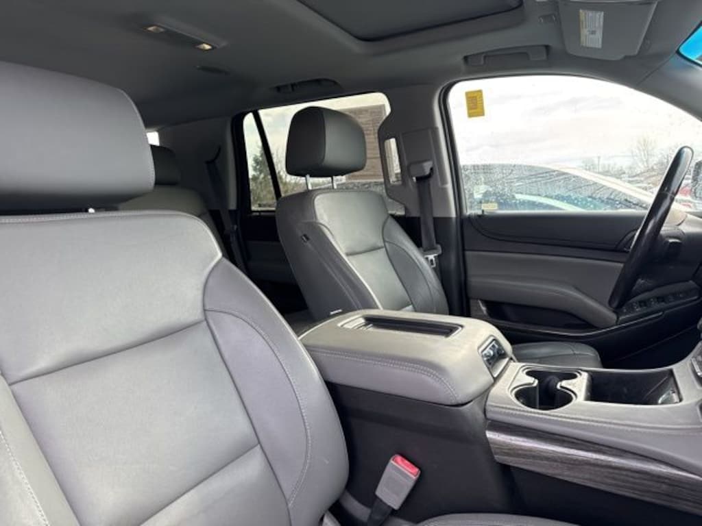 BLUETOOTH, USB & AUX PORT, BACK UP CAMERA, REAR BACK UP SENSORS, FRONT & REAR HEATED SEATS, HEATED STEERING WHEEL, THIRD ROW SEATING, SUNROOF, LANE ASSIST, REAR CROSS TRAFFIC ALERT, FORWARD COLLISION WARNING, BLIND SPOT MONITOR, ANDROID AUTO, APPLE CAR PLAY, ONSTAR CAPABLE, BOSE PREMIUM SOUND SYSTEM, TOUCH SCREEN DISPLAY, DRIVER'S AND PASSENGER'S POWERED SEAT, DRIVER'S MEMORY SEAT, 8 SEATER, 4WD, Jet Black/Dark Ash Leather, 18" x 8.5" Aluminum Wheels, 1st & 2nd Row Color-Keyed Carpeted Floor Mats, 2nd Row 60/40 Split-Folding Manual Bench, 2nd Row Pwr Release 60/40 Split Folding Bench Seat, 3rd Row 60/40 Power Fold Split-Bench, 3rd Row Manual 60/40 Split-Folding Fold Flat Bench, 4-Wheel Antilock Disc Brakes w/Brake Assist, 5 12-Volt Auxiliary Power Outlets, Alloy wheels, Auto-Dimming Inside Rear-View Mirror, Black Assist Steps, Body Security Content Theft Protection Package, Bose Premium 9-Speaker System, Cargo Net, CD player, Color-Keyed Carpeting Floor Covering, Driver Inboard & Front Passenger Airbags, Electronic Cruise Control w/Set & Resume Speed, Enhanced Driver Alert Package (Y86), Extended-Range Remote Keyless Entry, Floor Console, Fog Lamps, Forward Collision Alert, Front & Rear Park Assist, Front Passenger 6-Way Power Seat Adjuster, Garage door transmitter, Hands Free Power Liftgate, Heated 2nd Row Seats, Heated Leather Wrapped Steering Wheel, Illuminated entry, IntelliBeam Headlamps, Lane Change Alert w/Side Blind Zone Alert, Lane Keep Assist w/Lane Departure Warning, Leather-Wrapped Steering Wheel, Low Speed Forward Automatic Braking, Luxury Package, Memory Settings, OnStar Basic Plan For 5 Years, Outside temperature display, Passive Entry System, Power Liftgate, Power Sunroof, Power Tilt & Telescopic Steering Column w/Memory, Power-Adjustable Accelerator & Brake Pedals, Power-Folding Heated Outside Mirrors, Preferred Equipment Group 1LT, Premium Smooth Ride Suspension Package, Push Button Keyless Start, Rear Cross-Traffic Alert, Rear Park Assist w/Audible Warning, Remote Vehicle Start, Roof-Mounted Luggage Rack Side Rails, SiriusXM Satellite Radio, Theft-Deterrent Alarm System, Universal Home Remote, Vehicle Inclination Sensor, Vehicle Interior Movement Sensor. Black 2018 Chevrolet Tahoe LT 16/22 City/Highway MPG 4D Sport Utility 4WD 6-Speed Automatic Electronic with Overdrive EcoTec3 5.3L V8