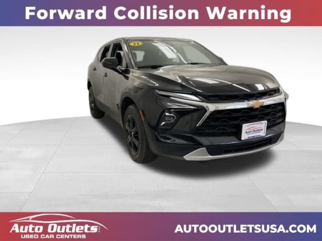 THIS VEHICLE IS LOCATED AT OUR WEBSTER STORE PLEASE CALL 585-671-2277 FOR MORE INFORMATION, ONE OWNER, BLUETOOTH, USB PORT, BACK UP CAMERA, BLUETOOTH AUDIO, WIFI CAPABLE, LANE ASSIST, FORWARD COLLISION WARNING, CHEVROLET MY LINK, ANDROID AUTO, APPLE CAR PLAY, ONSTAR CAPABLE, XM RADIO CAPABLE, 911 ASSIST, SPORT BUTTON, AUTO STOP/START TECHNOLOGY, KEYLESS ENTRY, PUSH BUTTON START, TOUCH SCREEN DISPLAY, DRIVER'S POWERED SEAT, AUTOMATIC HIGH BEAMS, REMOTE START, CHEVY SAFTEY ASSIST, PEDESTRIAN DETECTION, LANE KEEPING ASSIST, REAR SEAT REMINDER, TEEN DRIVER, AWD, 4-Way Manual Front Passenger Seat Adjuster, 4-Wheel Disc Brakes, 6-Speaker Audio System Feature, 8-Way Power Driver Seat Adjuster, ABS brakes, AM/FM radio: SiriusXM with 360L, Apple CarPlay/Android Auto, Auto High-beam Headlights, Automatic temperature control, Brake assist, Bumpers: body-color, Child-Seat-Sensing Airbag, Compass, Delay-off headlights, Driver door bin, Driver vanity mirror, Dual front impact airbags, Dual front side impact airbags, Electronic Stability Control, Emergency communication system: OnStar and Chevrolet connected services capable, Four wheel independent suspension, Front anti-roll bar, Front Bucket Seats, Front Center Armrest, Front dual zone A/C, Front reading lights, Fully automatic headlights, Heated door mirrors, Illuminated entry, Knee airbag, Leather Shift Knob, Low tire pressure warning, Occupant sensing airbag, Outside temperature display, Overhead airbag, Overhead console, Panic alarm, Passenger door bin, Passenger vanity mirror, Power door mirrors, Power Driver Lumbar Control, Power driver seat, Power steering, Power windows, Preferred Equipment Group 2LT, Premium Cloth Seat Trim, Radio data system, Radio: Chevrolet Infotainment 3 Plus System, Rear anti-roll bar, Rear reading lights, Rear seat center armrest, Rear window defroster, Rear window wiper, Remote keyless entry, Ride & Handling Suspension, Security system, Speed control, Speed-sensing steering, Split folding rear seat, Spoiler, Steering wheel mounted audio controls, Tachometer, Telescoping steering wheel, Tilt steering wheel, Traction control, Trip computer, Variably intermittent wipers, Wheels: 18" Grazen Metallic Aluminum. Black 2023 Chevrolet Blazer LT AWD 9-Speed Automatic with Overdrive 2.0L Turbocharged