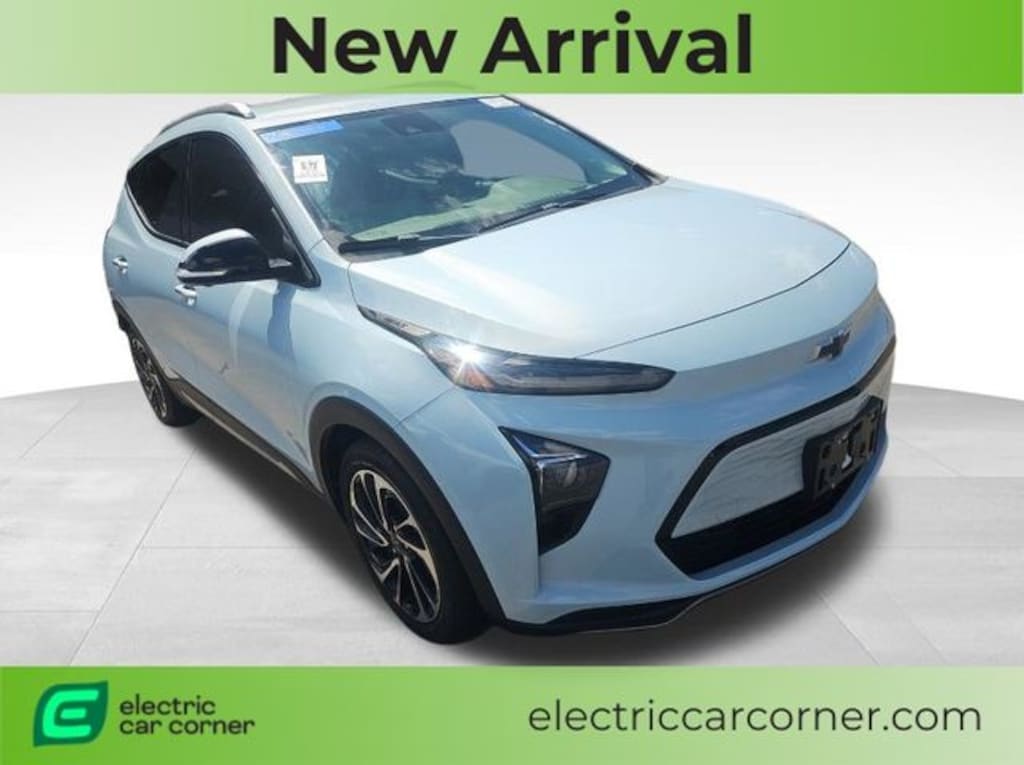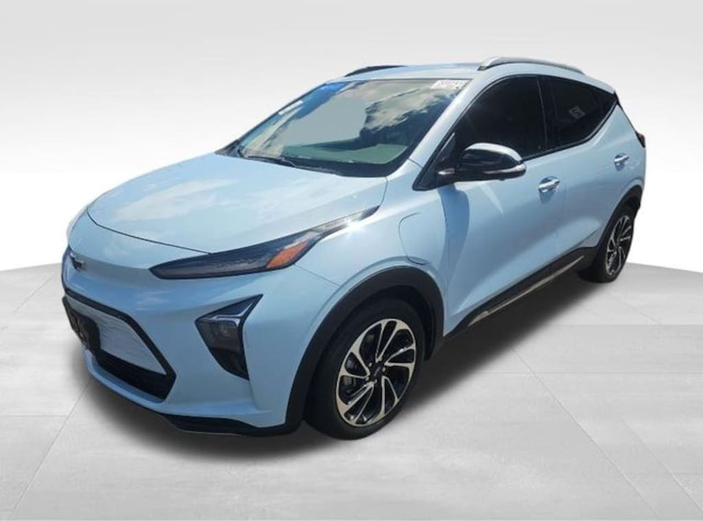 ONE OWNER, LOW MILEAGE, BLUETOOTH, SD CARD PORT, USB-C PORT, USB PORT, BACK UP CAMERA, REAR BACK UP SENSORS, FRONT HEATED & COOLED SEATS, FRONT & REAR HEATED SEATS, HEATED STEERING WHEEL, WIFI CAPABLE, ADAPTIVE CRUISE CONTROL, LANE ASSIST, REAR CROSS TRAFFIC ALERT, FORWARD COLLISION WARNING, BLIND SPOT MONITOR, CHEVROLET MY LINK, ANDROID AUTO, APPLE CAR PLAY, ONSTAR CAPABLE, XM RADIO CAPABLE, PUSH BUTTON START, TOUCH SCREEN DISPLAY, LEATHER SEATING, DRIVER'S POWERED SEAT, WIRELESS CELLPHONE CHARGING, REMOTE START, Automatic temperature control, Brake assist, Electronic Stability Control, Emergency communication system: OnStar and Chevrolet connected services capable, Exterior Parking Camera Rear, Illuminated entry, Outside temperature display, Preferred Equipment Group 2LZ, SD Card Receptacle, Wheels: 17" Machined-Face Aluminum. Tide Metallic (Ice Blue) 2023 Chevrolet Bolt EUV Premier 125/104 City/Highway MPG 4D Sport Utility FWD 1-Speed Automatic Electric Motor