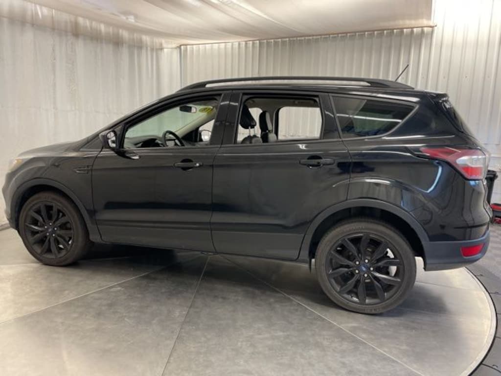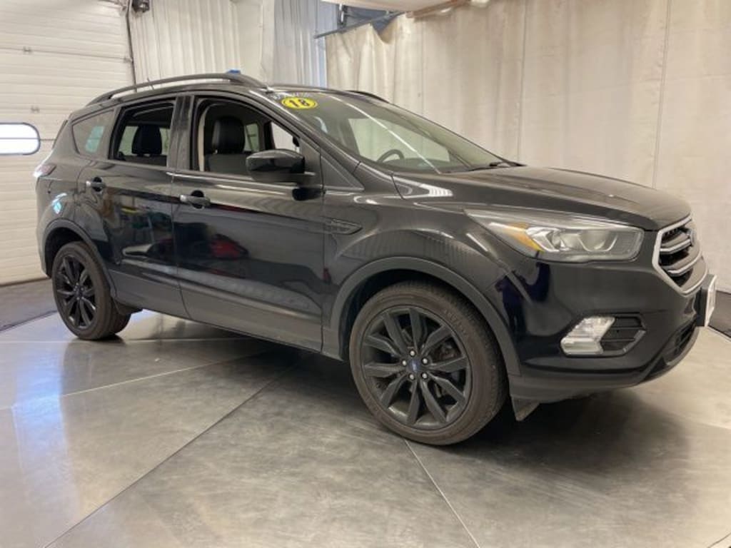 THIS VEHICLE IS LOCATED AT OUR WEBSTER STORE PLEASE CALL 585-671-2277 FOR MORE INFORMATION, LOW MILEAGE, BLUETOOTH, USB PORT, BACK UP CAMERA, HEATED SEATS, BLUETOOTH AUDIO, WIFI CAPABLE, STEERING WHEEL PADDLE SHIFTERS, MICROSOFT SYNC, ANDROID AUTO, 911 ASSIST, AUTO STOP/START TECHNOLOGY, TOUCH SCREEN DISPLAY, DRIVER'S POWERED SEAT, 4WD, 3.51 Axle Ratio, 4-Wheel Disc Brakes, 6 Speakers, ABS brakes, AM/FM radio: SiriusXM, Automatic temperature control, Black Beltline Molding, Brake assist, Bumpers: body-color, CD player, Compass, Delay-off headlights, Driver door bin, Driver vanity mirror, Dual front impact airbags, Dual front side impact airbags, Electronic Stability Control, Emergency communication system: 911 Assist, Equipment Group 200A, Exterior Parking Camera Rear, Four wheel independent suspension, Front & Rear Gloss Black-Painted Skid Plates, Front anti-roll bar, Front Bucket Seats, Front Center Armrest, Front dual zone A/C, Front fog lights, Front reading lights, Fully automatic headlights, Gloss Black-Painted Sideview Mirror Caps, Gloss Black-Painted Upper Grille Bars & Plinth, Halogen Projector Headlamps w/Black Bezels, Heated front seats, Heated Partial Leather Front Sport Bucket Seats, Illuminated entry, Knee airbag, Leather-Wrapped Steering Wheel & Shift Knob, LED Taillamps w/Black Bezel, Low tire pressure warning, Occupant sensing airbag, Outside temperature display, Overhead airbag, Overhead console, Paddle Shifters, Panic alarm, Passenger door bin, Passenger vanity mirror, Power door mirrors, Power driver seat, Power steering, Power windows, Radio data system, Rear anti-roll bar, Rear seat center armrest, Rear window defroster, Rear window wiper, Remote keyless entry, Roof rack: rails only, SE Sport Appearance Package, SE SYNC 3 Package, Security system, Speed control, Speed-sensing steering, Split folding rear seat, Steering wheel mounted audio controls, SYNC 3 Communications & Entertainment System, SYNC Connect, Tachometer, Telescoping steering wheel, Tilt steering wheel, Traction control, Trip computer, Variably intermittent wipers, Wheels: 19" Premium Ebony Black-Painted Aluminum. Shadow Black 2018 Ford Escape SE 4WD 6-Speed Automatic EcoBoost 2.0L I4 GTDi DOHC Turbocharged VCT