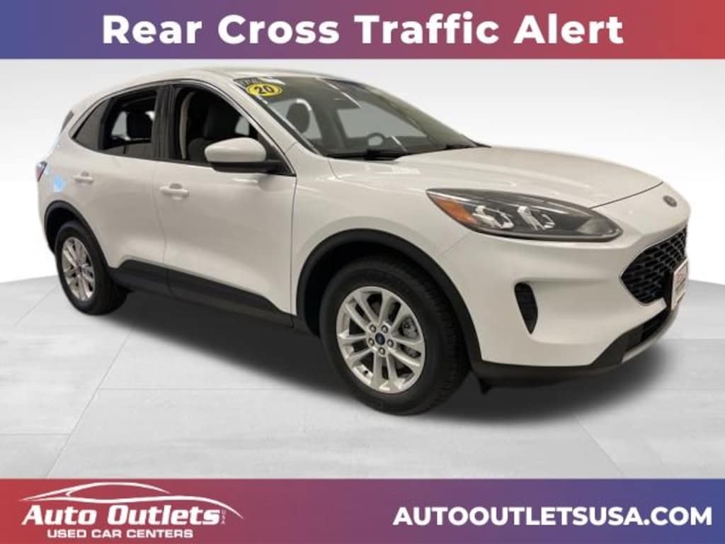 ONE OWNER, LOW MILEAGE, BLUETOOTH, USB PORT, BACK UP CAMERA, REAR BACK UP SENSORS, HEATED SEATS, BLUETOOTH AUDIO, WIFI CAPABLE, REAR CROSS TRAFFIC ALERT, LANE ASSIST, FORWARD COLLISION WARNING, BLIND SPOT MONITOR, MULTIPLE TERRAIN MODES, MICROSOFT SYNC, XM RADIO CAPABLE, 911 ASSIST, ECO BUTTON, SPORT BUTTON, KEYLESS ENTRY, PUSH BUTTON START, TOUCH SCREEN DISPLAY, DRIVER'S POWERED SEAT, FORD CO-PILOT360, LANE KEEPING SYSTEM, FORDPASS CONNECT, AWD, 3.81 axle ratio, 4-Wheel Disc Brakes, 6 Speakers, ABS brakes, Air Conditioning, AM/FM radio: SiriusXM, Auto High-beam Headlights, Automatic temperature control, Brake assist, Bumpers: body-color, Compass, Delay-off headlights, Driver door bin, Driver vanity mirror, Dual front impact airbags, Dual front side impact airbags, Electronic Stability Control, Emergency communication system: SYNC 3 911 Assist, Equipment Group 200A, Exterior Parking Camera Rear, FordPass Connect, Four wheel independent suspension, Front anti-roll bar, Front Center Armrest, Front License Plate Bracket, Front reading lights, Fully automatic headlights, Heated door mirrors, Heated Unique Cloth Front Bucket Seats, Illuminated entry, Knee airbag, Low tire pressure warning, Occupant sensing airbag, Outside temperature display, Overhead airbag, Overhead console, Panic alarm, Passenger door bin, Passenger vanity mirror, Power door mirrors, Power driver seat, Power steering, Power windows, Radio data system, Rear anti-roll bar, Rear reading lights, Rear seat center armrest, Rear window defroster, Rear window wiper, Remote keyless entry, Speed control, Speed-sensing steering, Speed-Sensitive Wipers, Split folding rear seat, Spoiler, Steering wheel mounted audio controls, Tachometer, Telescoping steering wheel, Tilt steering wheel, Traction control, Trip computer, Variably intermittent wipers, Wheels: 17" Shadow Silver-Painted Aluminum. Oxford White 2020 Ford Escape SE AWD 8-Speed Automatic 1.5L EcoBoost
