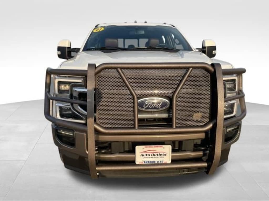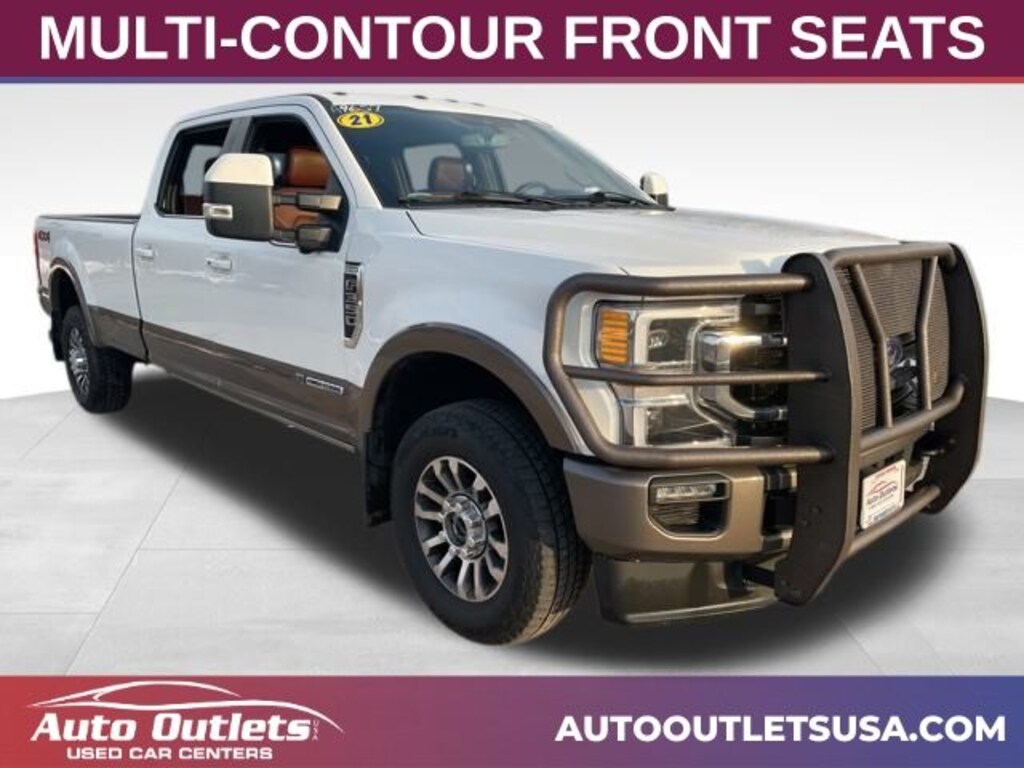 BLUETOOTH, USB & AUX PORT, USB PORT, BACK UP CAMERA, REAR BACK UP SENSORS, NAVIGATION, FRONT HEATED & COOLED SEATS, HEATED STEERING WHEEL, MOONROOF, WIFI CAPABLE, POWER OUTLET, REAR CROSS TRAFFIC ALERT, LANE ASSIST, FORWARD COLLISION WARNING, BLIND SPOT MONITOR, BEDLINER, MICROSOFT SYNC, ANDROID AUTO, APPLE CAR PLAY, XM RADIO CAPABLE, 911 ASSIST, BANG AND OLUFSEN PREMIUM SOUND SYSTEM, KEYLESS ENTRY, PUSH BUTTON START, TOUCH SCREEN DISPLAY, LEATHER SEATING, DRIVER'S AND PASSENGER'S POWERED SEAT, DRIVER'S MEMORY SEAT, WIRELESS CELLPHONE CHARGING, AUTOMATIC HIGH BEAMS, REMOTE START, LANE KEEPING SYSTEM, DRIVER ALERT, MULTI-CONTOUR SEATS, POWER DROPGATE, POWER RUNNING BOARDS, FORDPASS CONNECT, 4WD, 10 Speakers, 110V/400W Outlet, 4-Wheel Disc Brakes, 5th Wheel/Gooseneck Hitch Prep Package, ABS brakes, Adjustable pedals, AM/FM radio: SiriusXM, Auto High-beam Headlights, Auto tilt-away steering wheel, Auto-dimming Rear-View mirror, Automatic temperature control, Brake assist, Compass, Delay-off headlights, Driver door bin, Driver vanity mirror, Dual front impact airbags, Dual front side impact airbags, Electronic Stability Control, Emergency communication system: SYNC 3 911 Assist, Exterior Parking Camera Rear, Flow-Through Console, Front anti-roll bar, Front Bucket Seats, Front Center Armrest, Front dual zone A/C, Front fog lights, Front reading lights, Fully automatic headlights, Garage door transmitter, GVWR: 12,400 lb Payload Package, Heated door mirrors, Heated front seats, Heated steering wheel, Illuminated entry, Illuminated running boards, King Ranch Ultimate Package, Leather steering wheel, Low tire pressure warning, Memory seat, Multi-Contour Seats, Navigation System, Order Code 710A, Outside temperature display, Overhead airbag, Overhead console, Panic alarm, Passenger door bin, Passenger vanity mirror, Pedal memory, Power door mirrors, Power driver seat, Power passenger seat, Power steering, Power windows, Power-Deployable Running Boards, PowerScope Trailer Tow Mirrors w/Heat, Quad Beam LED Headlamps & LED Taillamps, Radio data system, Radio: B&O System by Bang & Olufsen, Rain sensing wipers, Rear Parking Sensors, Rear reading lights, Rear seat center armrest, Rear step bumper, Rear window defroster, Remote keyless entry, Security system, Speed control, Split folding rear seat, Steering wheel memory, Steering wheel mounted A/C controls, Steering wheel mounted audio controls, SYNC 3 Communications & Entertainment System, Tachometer, Tailgate Step & Handle, Telescoping steering wheel, Tilt steering wheel, Traction control, Trip computer, Turn signal indicator mirrors, Twin Panel Power Moonroof, Unique King Ranch Leather 40/Console/40 Front Seats, Variably intermittent wipers, Ventilated front seats, Wheels: 18" Bright Machined Cast Aluminum. Star White Metallic Tri-Coat 2021 Ford F-350SD King Ranch 4WD 10-Speed Automatic Power Stroke 6.7L V8 DI 32V OHV Turbodiesel