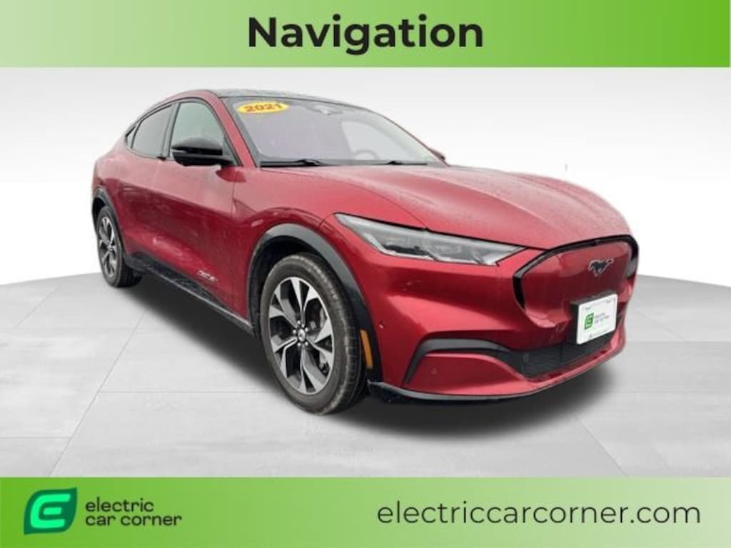 ONE OWNER, BLUETOOTH, USB-C PORT, USB PORT, BACK UP CAMERA, REAR BACK UP SENSORS, NAVIGATION, HEATED SEATS, HEATED STEERING WHEEL, MOONROOF, WIFI CAPABLE, ADAPTIVE CRUISE CONTROL, LANE ASSIST, REAR CROSS TRAFFIC ALERT, FORWARD COLLISION WARNING, BLIND SPOT MONITOR, POWER LIFTGATE, ANDROID AUTO, APPLE CAR PLAY, XM RADIO CAPABLE, 911 ASSIST, BANG AND OLUFSEN PREMIUM SOUND SYSTEM, PUSH BUTTON START, LARGE TOUCH SCREEN DISPLAY, LEATHER SEATING, DRIVER'S AND PASSENGER'S POWERED SEAT, DRIVER'S MEMORY SEAT, WIRELESS CELLPHONE CHARGING, 9 Speakers, Alloy wheels, AM/FM radio: SiriusXM, Brake assist, Cargo Area Protector, Electronic Stability Control, Emergency communication system: 911 Assist, Equipment Group 300A, Exterior Parking Camera Rear, Front & Rear Floor Liners, Garage door transmitter, Illuminated entry, Interior Protection Package (Pre-Installed), Navigation system: Connected Navigation, Outside temperature display, Panic alarm, Power Liftgate, Remote keyless entry, Security system, SYNC 4A w/Enhanced Voice Recognition, Wheels: 19" Machined-Face Aluminum. Red Metallic 2021 Ford Mustang Mach-E Premium 96/84 City/Highway MPG 4D Sport Utility AWD Single-Speed Automatic Dual Electric Motor