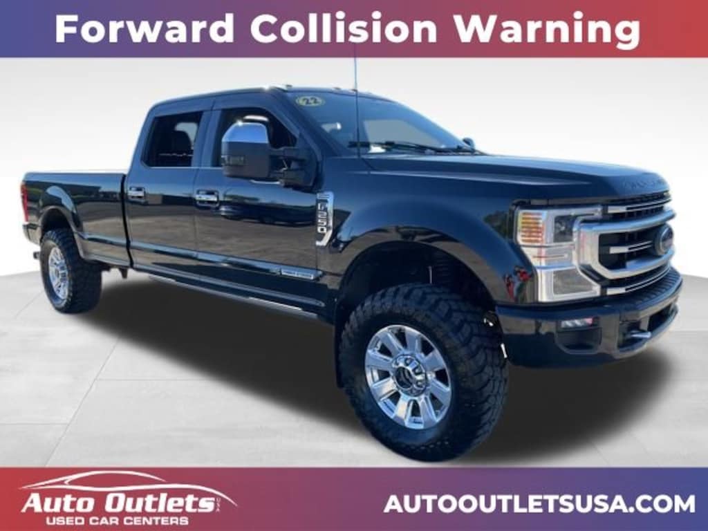 ONE OWNER, LOW MILEAGE, BLUETOOTH, USB-C PORT, USB PORT, BACK UP CAMERA, REAR BACK UP SENSORS, NAVIGATION, FRONT HEATED & COOLED SEATS, FRONT & REAR HEATED SEATS, MOONROOF, WIFI CAPABLE, POWER OUTLET, ADAPTIVE CRUISE CONTROL, REAR CROSS TRAFFIC ALERT, LANE ASSIST, FORWARD COLLISION WARNING, BLIND SPOT MONITOR, REAR POWER SLIDING WINDOW, BEDLINER, MICROSOFT SYNC, ANDROID AUTO, APPLE CAR PLAY, XM RADIO CAPABLE, 911 ASSIST, BANG AND OLUFSEN PREMIUM SOUND SYSTEM, KEYLESS ENTRY, PUSH BUTTON START, TOUCH SCREEN DISPLAY, LEATHER SEATING, DRIVER'S AND PASSENGER'S POWERED SEAT, DRIVER'S MEMORY SEAT, AUTOMATIC HIGH BEAMS, REMOTE START, LANE KEEPING SYSTEM, DRIVER ALERT, POWER DROPGATE, MULTI-CONTOUR SEATS, REAR OCCUPANT ALERT, FORDPASS CONNECT, FORD ASSISSANT, 4WD, 10 Speakers, 4-Wheel Disc Brakes, 5th Wheel/Gooseneck Hitch Prep Package, ABS brakes, Adaptive Cruise Control & Collision Warning, Adjustable pedals, Alloy wheels, AM/FM radio: SiriusXM with 360L, Auto High-beam Headlights, Auto-dimming Rear-View mirror, Automatic temperature control, Brake assist, Compass, Delay-off headlights, Driver door bin, Driver vanity mirror, Dual front impact airbags, Dual front side impact airbags, Electronic Stability Control, Emergency communication system: SYNC 4 911 Assist, Exterior Parking Camera Rear, Flow-Through Console, Front anti-roll bar, Front Bucket Seats, Front Center Armrest, Front dual zone A/C, Front fog lights, Front reading lights, Fully automatic headlights, FX4 Off-Road Package, GVWR: 9,900 lb Payload Package, Heated door mirrors, Heated Rear Seats, Hill Descent Control, Illuminated entry, Lane Departure Warning System, Leather steering wheel, Low tire pressure warning, Memory Power-Adjustable Pedals, Navigation system: Connected Navigation, Off-Road Specifically Tuned Shock Absorbers, Order Code 703A, Outside temperature display, Overhead airbag, Overhead console, Panic alarm, Passenger door bin, Passenger vanity mirror, Pedal memory, Power door mirrors, Power driver seat, Power Heated/Ventilated Driver Seat w/Memory, Power Heated/Ventilated Passenger Seat, Power passenger seat, Power steering, Power windows, Radio data system, Radio: B&O Sound System by Bang & Olufsen, Rain sensing wipers, Rear Parking Sensors, Rear reading lights, Rear seat center armrest, Rear step bumper, Rear window defroster, Remote keyless entry, Security system, Split folding rear seat, Steering wheel memory, Steering wheel mounted audio controls, SYNC 4 w/Enhanced Voice Recognition, Tachometer, Telescoping steering wheel, Tilt steering wheel, Traction control, Trip computer, Turn signal indicator mirrors, Twin Panel Power Moonroof, Unique FX4 Off-Road Box Decal, Unique Platinum Leather 40/Console/40 Seats, Variably intermittent wipers. Agate Black Metallic 2022 Ford F-250SD Platinum 4WD 10-Speed Automatic Power Stroke 6.7L V8 DI 32V OHV Turbodiesel