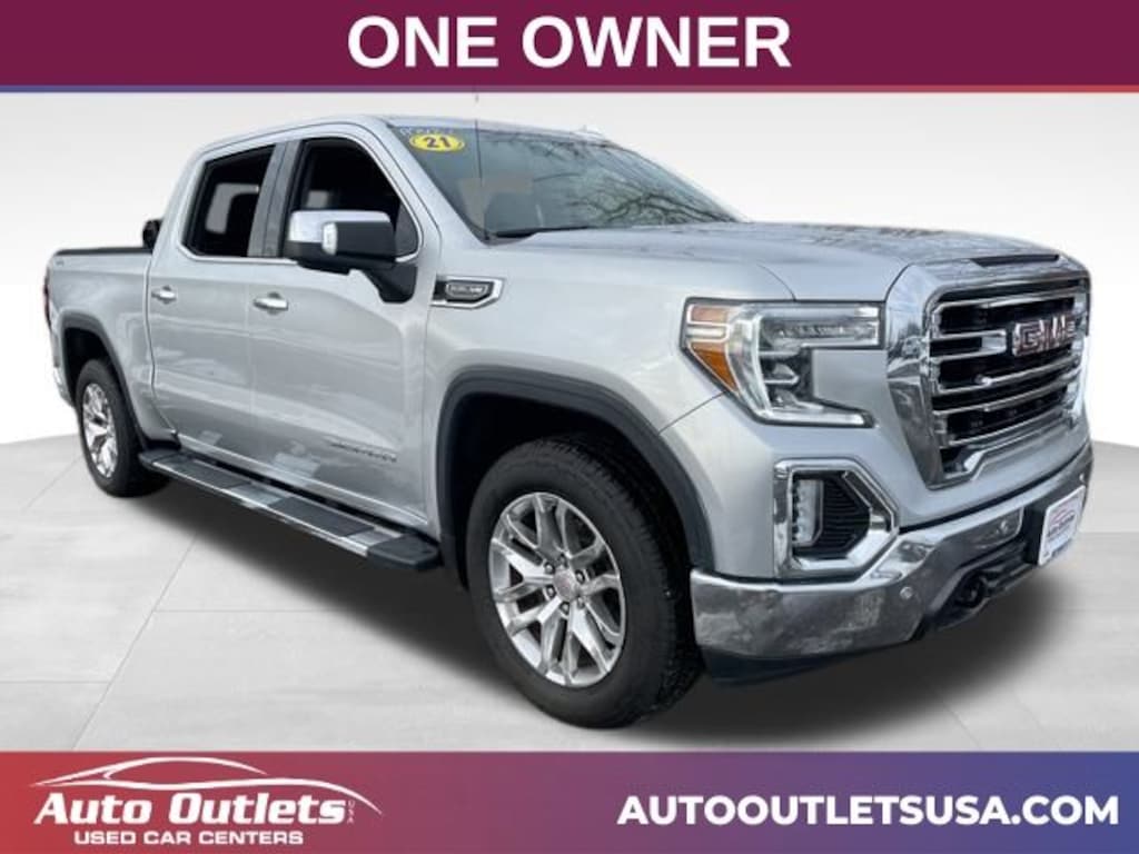 ONE OWNER, BLUETOOTH, USB & AUX PORT, USB-C PORT, USB PORT, BACK UP CAMERA, REAR BACK UP SENSORS, FRONT HEATED & COOLED SEATS, FRONT & REAR HEATED SEATS, HEATED STEERING WHEEL, BLUETOOTH AUDIO, REAR CROSS TRAFFIC ALERT, LANE ASSIST, BLIND SPOT MONITOR, REAR POWER SLIDING WINDOW, TONNEAU, BEDLINER, GMC INTELLILINK, ANDROID AUTO, APPLE CAR PLAY, ONSTAR CAPABLE, XM RADIO CAPABLE, 911 ASSIST, AUTO STOP/START TECHNOLOGY, KEYLESS ENTRY, PUSH BUTTON START, TOUCH SCREEN DISPLAY, LEATHER SEATING, DRIVER'S AND PASSENGER'S POWERED SEAT, DRIVER'S MEMORY SEAT, REMOTE START, Automatic, 4WD, Jet Black w/Perf Leather-Appointed Front Outboard Seat Trim, 10-Way Power Driver Seat Adjuster w/Lumbar, 10-Way Power Passenger Seat Adjuster w/Lumbar, 12-Volt Rear Auxiliary Power Outlet, 120-Volt Bed Mounted Power Outlet, 120-Volt Instrument Panel Power Outlet, 170 Amp Alternator, 2 USB Ports, 2 USB Ports (1st Row), 20" x 9" Polished Aluminum Wheels, 4-Wheel Disc Brakes, 4G LTE Wi-Fi Hotspot Capable, 6-Speaker Audio System Feature, ABS brakes, AM/FM radio: SiriusXM with 360L, Apple CarPlay/Android Auto, Auto-dimming door mirrors, Auto-dimming Rear-View mirror, Auto-Locking Rear Differential, Automatic temperature control, Auxiliary External Transmission Oil Cooler, Brake assist, Bumpers: chrome, Chrome Grille, Chrome Wheel To Wheel Assist Steps, Color-Keyed Carpeting Floor Covering, Compass, Deep-Tinted Glass, Delay-off headlights, Driver Alert Package I, Driver door bin, Driver Memory, Driver vanity mirror, Dual front impact airbags, Dual front side impact airbags, Electric Rear-Window Defogger, Electrical Lock Control Steering Column, Electronic Stability Control, Floor-Mounted Center Console, Front 40/20/40 Split-Bench Seat, Front anti-roll bar, Front Bucket Seats, Front Center Armrest w/Storage, Front dual zone A/C, Front fog lights, Front Frame-Mounted Black Recovery Hooks, Front reading lights, Front wheel independent suspension, Fully automatic headlights, GMC Connected Access Capable, Heated 2nd Row Outboard Seats, Heated door mirrors, Heated Driver & Front Outboard Passenger Seating, Heated steering wheel, Heavy Duty Suspension, Hitch Guidance, Hitch Guidance w/Hitch View, Illuminated entry, In-Vehicle Trailering App, Integrated Trailer Brake Controller, Keyless Open & Start, Lane Change Alert w/Side Blind Zone Alert, LED Cargo Area Lighting, Low tire pressure warning, Manual Tilt-Wheel & Telescoping Steering Column, Memory seat, Occupant sensing airbag, OnStar & GMC Connected Services Capable, Outside temperature display, Overhead airbag, Overhead console, Panic alarm, Passenger door bin, Passenger vanity mirror, Perf Leather-Appointed Front Outboard Seat Trim, Perimeter Lighting, Power Door Locks, Power door mirrors, Power driver seat, Power Front Passenger Windows w/Express Up/Down, Power Front Windows w/Driver Express Up/Down, Power passenger seat, Power Rear Windows w/Express Down, Power Sliding Rear Window w/Rear Defogger, Power steering, Preferred Equipment Group 4SA, Premium audio system: GMC Infotainment System, ProGrade Trailering System, Radio data system, Radio: Premium GMC Infotainment Sys w/Multi-Touch, Rear Cross Traffic Alert, Rear Dual USB Charging-Only Ports, Rear reading lights, Rear seat center armrest, Rear step bumper, Rear Wheelhouse Liners, Remote keyless entry, Remote Vehicle Starter System, Security system, SLT Convenience Package, SLT Premium Package, Speed control, Speed-sensing steering, Split folding rear seat, Steering Wheel Audio Controls, Steering wheel mounted audio controls, Tachometer, Telescoping steering wheel, Theft Deterrent System (Unauthorized Entry), Tilt steering wheel, Traction control, Trailering Package, Trip computer, Ultrasonic Front & Rear Park Assist, Universal Home Remote, Variably intermittent wipers, Ventilated Driver & Front Passenger Seats. Quicksilver Metallic 2021 GMC Sierra 1500 SLT 4WD Automatic EcoTec3 5.3L V8