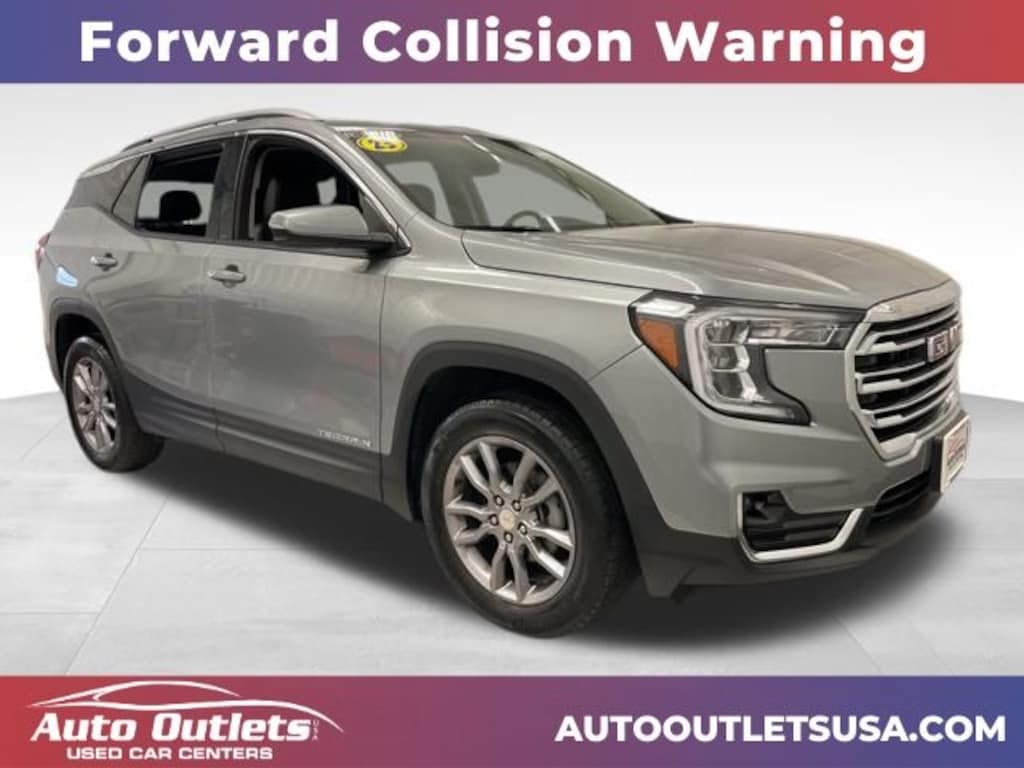 BLUETOOTH, USB, AUX & SD CARD PORT, USB-C PORT, USB PORT, BACK UP CAMERA, HEATED SEATS, HEATED STEERING WHEEL, BLUETOOTH AUDIO, WIFI CAPABLE, LANE ASSIST, FORWARD COLLISION WARNING, POWER LIFTGATE, GMC INTELLILINK, ANDROID AUTO, APPLE CAR PLAY, ONSTAR CAPABLE, XM RADIO CAPABLE, 911 ASSIST, AUTO STOP/START TECHNOLOGY, KEYLESS ENTRY, PUSH BUTTON START, TOUCH SCREEN DISPLAY, LEATHER SEATING, DRIVER'S AND PASSENGER'S POWERED SEAT, DRIVER'S MEMORY SEAT, AUTOMATIC HIGH BEAMS, REMOTE START, GMC PRO SAFTEY, PEDESTRIAN DETECTION, LANE KEEP ASSIST, REAR SEAT REMINDER, TEEN DRIVER, AWD, 2 USB Data Ports, 2 USB Data Ports w/SD Card Reader, 3.47 Axle Ratio, 4-Wheel Disc Brakes, 6-Speaker Audio System Feature, 6-Way Power Front Passenger Seat, 8-Way Power Driver Seat Adjuster, ABS brakes, AM/FM radio: SiriusXM, Auto High-beam Headlights, Auto-dimming Rear-View mirror, Automatic temperature control, Bluetooth® For Phone, Brake assist, Bumpers: body-color, Compass, Delay-off headlights, Driver & Front Passenger Heated Seats, Driver door bin, Driver vanity mirror, Dual front impact airbags, Dual front side impact airbags, Electronic Stability Control, Emergency communication system: OnStar and GMC connected services capable, Four wheel independent suspension, Front anti-roll bar, Front Bucket Seats, Front Center Armrest, Front dual zone A/C, Front fog lights, Front Passenger 2-Way Power Lumbar, Front reading lights, Fully automatic headlights, Garage door transmitter, Heated door mirrors, Heated front seats, Heated steering wheel, Illuminated entry, Lane Departure Warning System, Low tire pressure warning, Memory seat, Occupant sensing airbag, Outside temperature display, Overhead airbag, Overhead console, Panic alarm, Passenger door bin, Passenger vanity mirror, Perforated Leather-Appointed Seat Trim, Power door mirrors, Power Driver Lumbar Control, Power driver seat, Power Liftgate, Power passenger seat, Power steering, Power windows, Preferred Equipment Group 4SA, Radio data system, Radio: GMC Infotainment Audio System w/8" Display, Rear anti-roll bar, Rear seat center armrest, Rear window defroster, Rear window wiper, Remote keyless entry, Roof rack: rails only, Security system, Speed control, Speed-sensing steering, Split folding rear seat, Spoiler, Steering wheel mounted audio controls, Tachometer, Telescoping steering wheel, Tilt steering wheel, Traction control, Trip computer, Turn signal indicator mirrors, Variably intermittent wipers, Wheels: 18" x 7" Silver Painted Aluminum, Wireless Apple CarPlay/Wireless Android Auto. Sterling Metallic 2023 GMC Terrain SLT AWD 9-Speed Automatic 1.5L DOHC