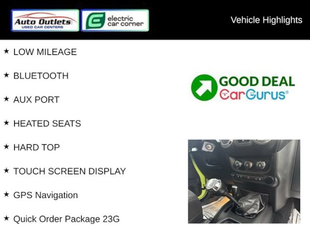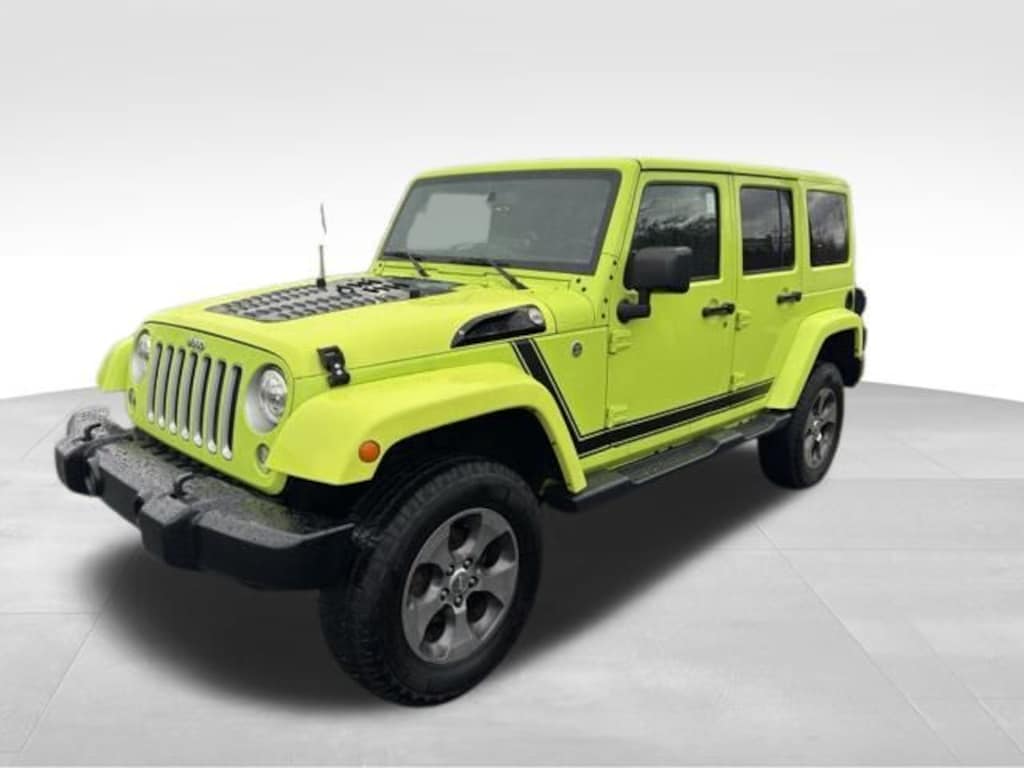 LOW MILEAGE, BLUETOOTH, AUX PORT, HEATED SEATS, HARD TOP, TOUCH SCREEN DISPLAY, 40GB Hard Drive w/28GB Available, 8 Speakers, Alpine 9-Speaker w/All Weather Subwoofer, AM/FM radio: SiriusXM, Audio Jack Input for Mobile Devices, Body Color 3-Piece Hard Top, Brake assist, Connectivity Group, Electronic Stability Control, GPS Navigation, Illuminated entry, Leather steering wheel, Max Tow Package, Outside temperature display, Panic alarm, Quick Order Package 23G, Security system, Uconnect Voice Command w/Bluetooth. Hypergreen Clearcoat 2017 Jeep Wrangler Unlimited Sahara 16/21 City/Highway MPG 4D Sport Utility 4WD 6-Speed Manual 3.6L V6 24V VVT