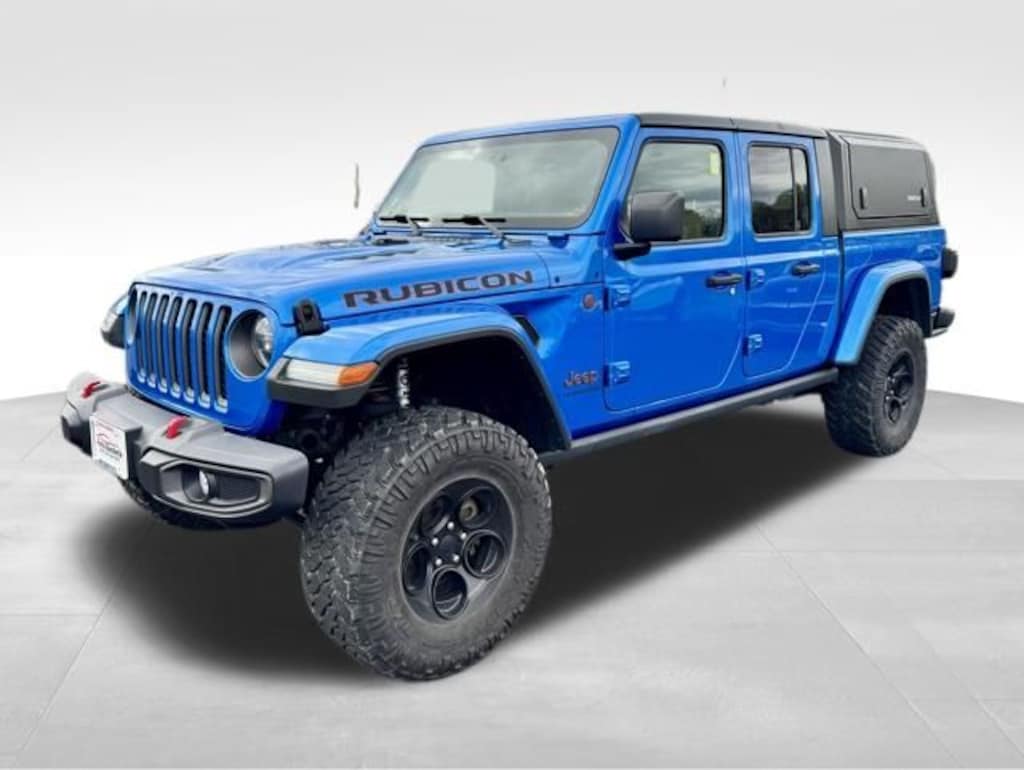 ONE OWNER, BLUETOOTH, USB & AUX PORT, USB-C PORT, BACK UP CAMERA, HEATED SEATS, HEATED STEERING WHEEL, HARD TOP, UCONNECT, ANDROID AUTO, APPLE CAR PLAY, XM RADIO CAPABLE, PUSH BUTTON START, TOUCH SCREEN DISPLAY, LEATHER SEATING, REMOTE START, 8 Speakers, AM/FM radio: SiriusXM, Automatic temperature control, Brake assist, Electronic Stability Control, Garage door transmitter, Heated door mirrors, Illuminated entry, Integrated roll-over protection, Leather steering wheel, LED Park Turn Lamps, LED Premium Reflector Headlamps, LED Taillamps, Outside temperature display, ParkView Rear Back-Up Camera, Radio: Uconnect 4 w/7" Display, Remote Start System. Hydro Blue Pearlcoat 2021 Jeep Gladiator Rubicon 17/22 City/Highway MPG 4D Crew Cab 4WD 8-Speed Automatic 3.6L V6 24V VVT