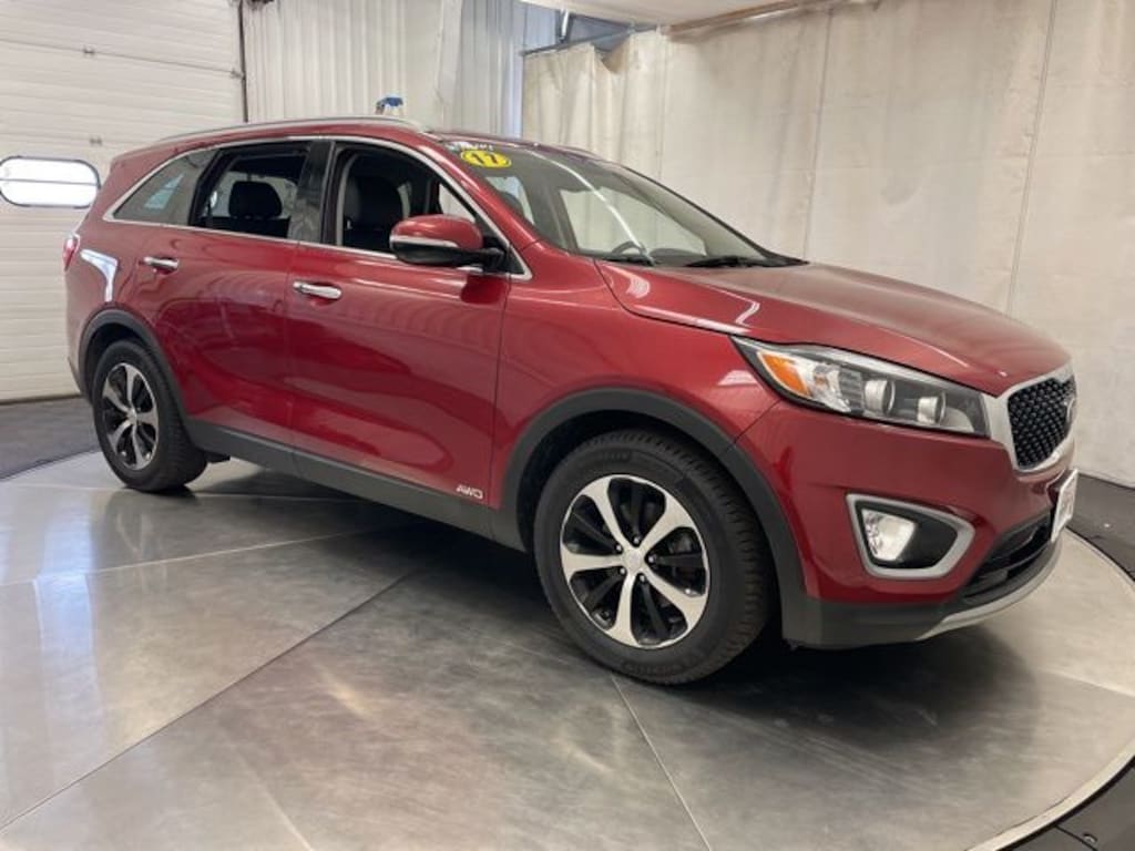 ONE OWNER, LOW MILEAGE, BLUETOOTH, USB & AUX PORT, IPOD PORT, USB PORT, BACK UP CAMERA, REAR BACK UP SENSORS, HEATED SEATS, BLUETOOTH AUDIO, POWER OUTLET, REAR CROSS TRAFFIC ALERT, BLIND SPOT MONITOR, POWER LIFTGATE, ANDROID AUTO, APPLE CAR PLAY, XM RADIO CAPABLE, ECO BUTTON, SPORT BUTTON, KEYLESS ENTRY, PUSH BUTTON START, TOUCH SCREEN DISPLAY, LEATHER SEATING, DRIVER'S AND PASSENGER'S POWERED SEAT, AWD, 110V Power Inverter, 4-Wheel Disc Brakes, 6 Speakers, ABS brakes, AM/FM radio: SiriusXM, Anti-whiplash front head restraints, Apple CarPlay & Android Auto, Auto Up/Down Passenger Window, Auto-dimming Rear-View mirror, Automatic temperature control, Blind Spot Detection System, Brake assist, Bumpers: body-color, CD player, Chrome Roof Rails, Delay-off headlights, Driver door bin, Driver vanity mirror, Dual front impact airbags, Dual front side impact airbags, Electronic Stability Control, Emergency communication system: UVO3, EX Premium Package, Exterior Parking Camera Rear, Four wheel independent suspension, Front anti-roll bar, Front Center Armrest, Front dual zone A/C, Front fog lights, Front reading lights, Fully automatic headlights, Hands-Free Power Liftgate, Heated door mirrors, Heated Front Bucket Seats, Illuminated entry, Leather Seat Trim, LED Interior Lighting, Low tire pressure warning, Occupant sensing airbag, Outside temperature display, Overhead airbag, Overhead console, Panic alarm, Passenger door bin, Passenger vanity mirror, Power driver seat, Power Folding Outside Mirrors, Power passenger seat, Power steering, Power windows, Premium TFT Supevision Meter Cluster, Rear anti-roll bar, Rear Cross Traffic Alert, Rear Parking Sensors, Rear seat center armrest, Rear window defroster, Rear window wiper, Remote keyless entry, Roof rack: rails only, Security system, Speed control, Speed-sensing steering, Split folding rear seat, Spoiler, Steering wheel mounted audio controls, Tachometer, Telescoping steering wheel, Tilt steering wheel, Traction control, Trip computer, Turn signal indicator mirrors, Variably intermittent wipers, Wheels: 18" x 7.5 Alloy. Remington Red Metallic 2017 Kia Sorento EX AWD 6-Speed Automatic with Sportmatic 2.0L DOHC