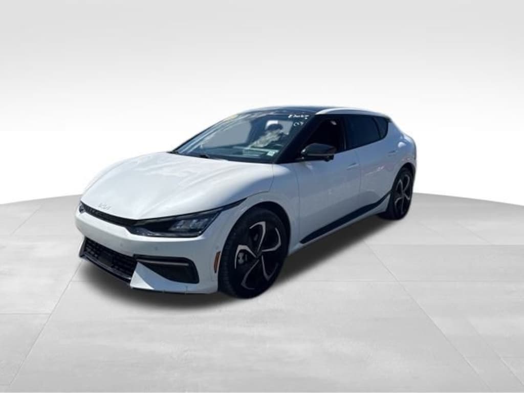 LOW MILEAGE, BLUETOOTH, USB-C PORT, USB PORT, BACK UP CAMERA, REAR BACK UP SENSORS, NAVIGATION, HEATED SEATS, FRONT HEATED & COOLED SEATS, FRONT & REAR HEATED SEATS, HEATED STEERING WHEEL, SUNROOF, BLUETOOTH AUDIO, WIFI CAPABLE, ADAPTIVE CRUISE CONTROL, LANE ASSIST, REAR CROSS TRAFFIC ALERT, FORWARD COLLISION WARNING, BLIND SPOT MONITOR, ANDROID AUTO, APPLE CAR PLAY, XM RADIO CAPABLE, 911 ASSIST, MERIDIAN PREMIUM SOUND SYSTEM, PUSH BUTTON START, TOUCH SCREEN DISPLAY, LEATHER SEATING, DRIVER'S POWERED SEAT, DRIVER'S AND PASSENGER'S POWERED SEAT, DRIVER'S MEMORY SEAT, WIRELESS CELLPHONE CHARGING, 14 Speakers, AM/FM radio: SiriusXM, Auto High-beam Headlights, Brake assist, Delay-off headlights, Electronic Stability Control, Fully automatic headlights, GT-Line Suede Seat Package, Navigation system: AVN 5.0 Navigation System, Radio: Meridian Premium Audio System. Snow White Pearl 2022 Kia EV6 GT-Line 116/94 City/Highway MPG 4D Sport Utility AWD 1-Speed Automatic Electric Motor