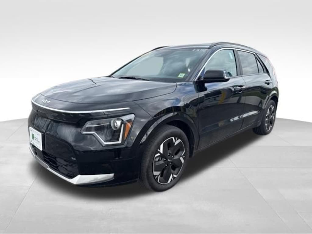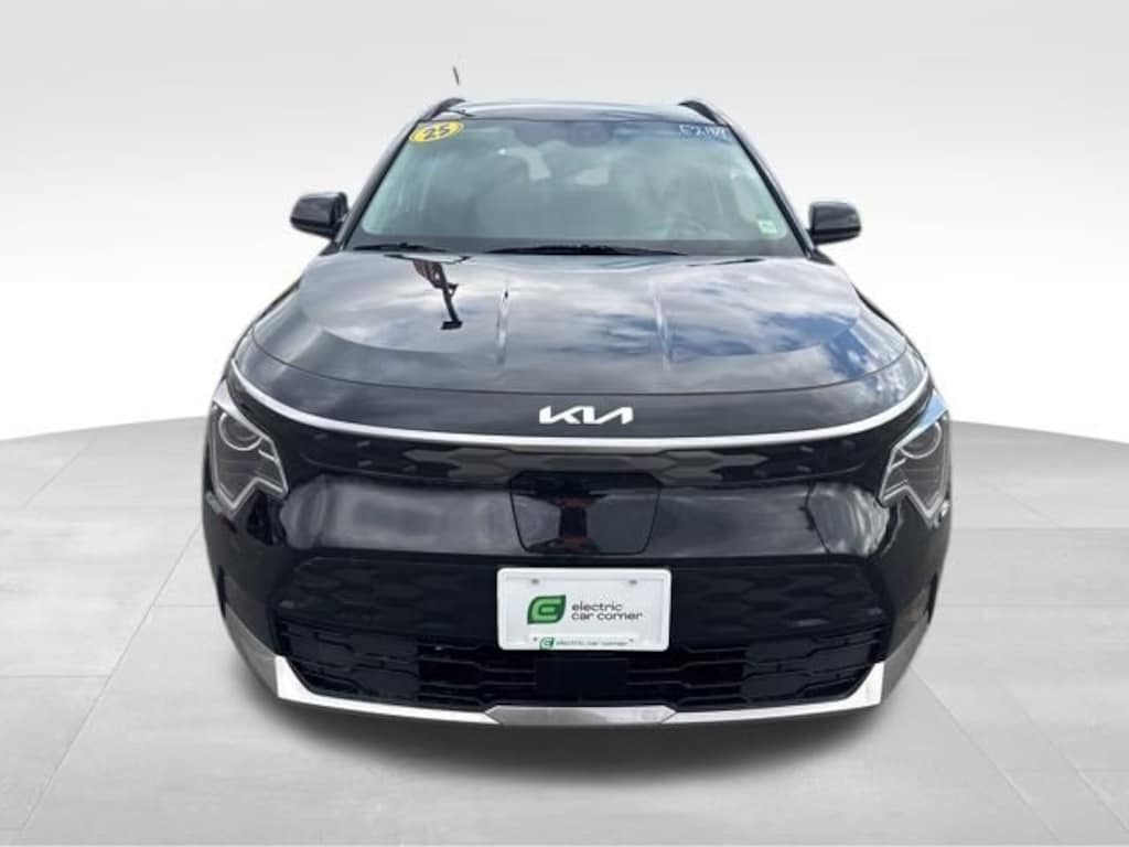 ONE OWNER, BLUETOOTH, USB-C PORT, USB PORT, BACK UP CAMERA, REAR BACK UP SENSORS, NAVIGATION, FRONT & REAR HEATED SEATS, HEATED STEERING WHEEL, ADAPTIVE CRUISE CONTROL, LANE ASSIST, REAR CROSS TRAFFIC ALERT, FORWARD COLLISION WARNING, BLIND SPOT MONITOR, ANDROID AUTO, APPLE CAR PLAY, XM RADIO CAPABLE, 911 ASSIST, PUSH BUTTON START, TOUCH SCREEN DISPLAY, LEATHER SEATING, DRIVER'S POWERED SEAT, WIRELESS CELLPHONE CHARGING, 6 Speakers, Alloy wheels, AM/FM Radio, AM/FM radio: SiriusXM, Automatic temperature control, Brake assist, Electronic Stability Control, Emergency communication system: Kia Connect (includes 1 year free trial), Illuminated entry, Navigation System, Outside temperature display, Panic alarm, Power Liftgate, Remote keyless entry, Security system, Wind Preserve Package. Aurora Black Pearl 2025 Kia Niro EV Wind 126/101 City/Highway MPG 4D Sport Utility FWD 1-Speed Automatic Electric Motor