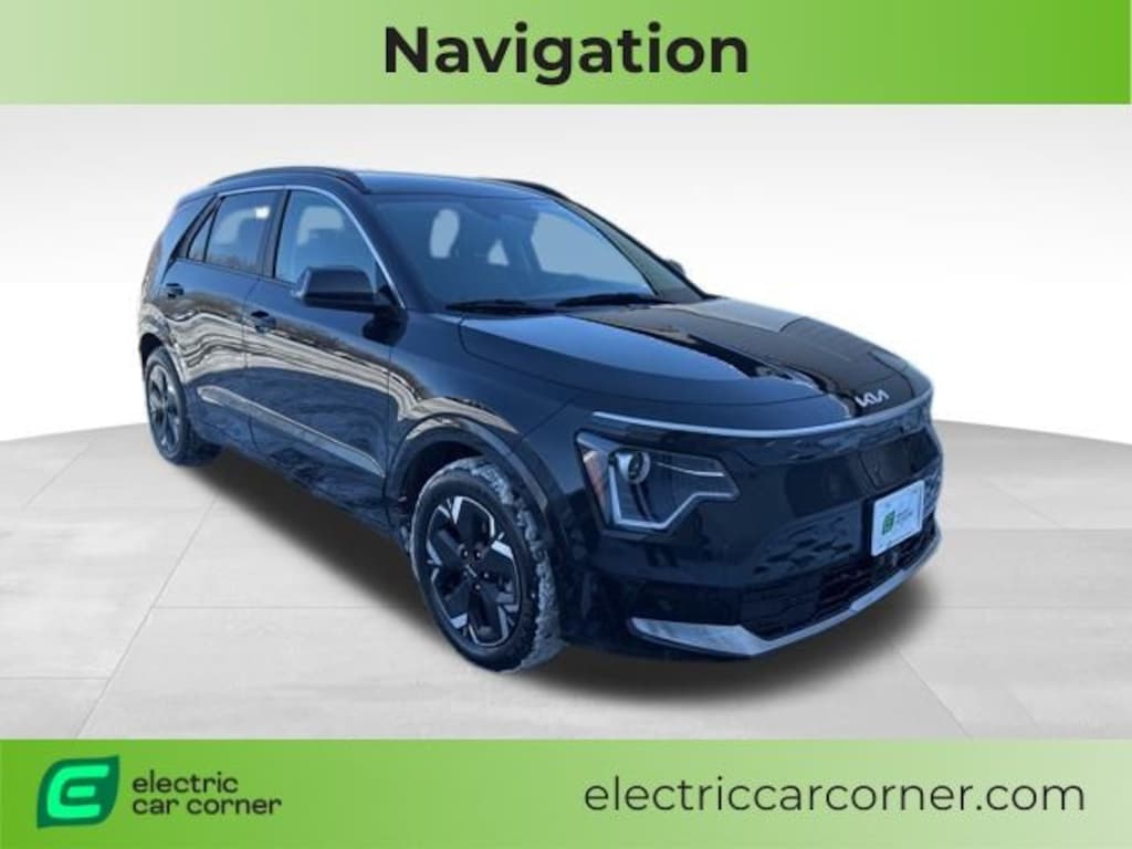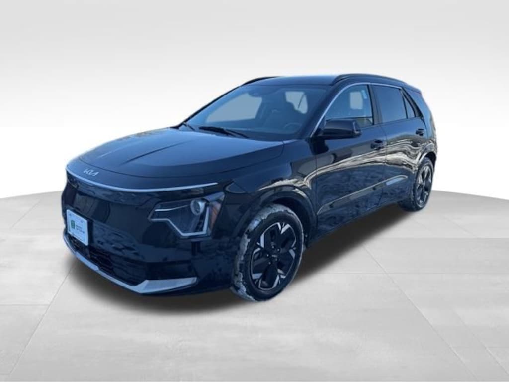 ONE OWNER, BLUETOOTH, USB-C PORT, USB PORT, BACK UP CAMERA, REAR BACK UP SENSORS, NAVIGATION, FRONT & REAR HEATED SEATS, HEATED STEERING WHEEL, ADAPTIVE CRUISE CONTROL, LANE ASSIST, REAR CROSS TRAFFIC ALERT, FORWARD COLLISION WARNING, BLIND SPOT MONITOR, ANDROID AUTO, APPLE CAR PLAY, XM RADIO CAPABLE, 911 ASSIST, PUSH BUTTON START, TOUCH SCREEN DISPLAY, LEATHER SEATING, DRIVER'S POWERED SEAT, WIRELESS CELLPHONE CHARGING, 6 Speakers, Alloy wheels, AM/FM Radio, AM/FM radio: SiriusXM, Brake assist, Electronic Stability Control, Emergency communication system: Kia Connect (includes 1 year free trial), Illuminated entry, Navigation System, Outside temperature display, Panic alarm, Power Liftgate, Remote keyless entry, Security system, Wind Preserve Package. Aurora Black Pearl 2025 Kia Niro EV Wind 126/101 City/Highway MPG 4D Sport Utility FWD 1-Speed Automatic Electric Motor