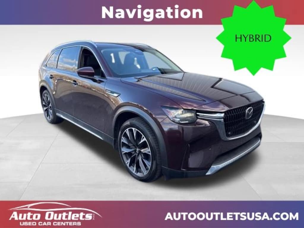 ONE OWNER, BLUETOOTH, SD CARD PORT, USB-C PORT, BACK UP CAMERA, REAR BACK UP SENSORS, NAVIGATION, HEATED SEATS, DUAL PANEL SUNROOF, SUNSHADE, BLUETOOTH AUDIO, WIFI CAPABLE, ADAPTIVE CRUISE CONTROL, LANE ASSIST, REAR CROSS TRAFFIC ALERT, FORWARD COLLISION WARNING, BLIND SPOT MONITOR, ANDROID AUTO, APPLE CAR PLAY, XM RADIO CAPABLE, PUSH BUTTON START, LEATHER SEATING, DRIVER'S AND PASSENGER'S POWERED SEAT, DRIVER'S MEMORY SEAT, 7 SEATER, SECOND ROW CAPTAINS CHAIRS, WIRELESS CELLPHONE CHARGING, 12 Speakers, Air Conditioning, AM/FM radio: SiriusXM, Auto-dimming Rear-View mirror, Automatic temperature control, Brake assist, E911 Automatic Emergency Notification, Electronic Stability Control, Emergency communication system: MAZDA CONNECT, Exterior Parking Camera Rear, Four wheel independent suspension, Front dual zone A/C, Garage door transmitter: HomeLink, Heated door mirrors, Illuminated entry, Infotainment System Voice Command, Mazda Connected Services, Mazda Navigation System, Navigation system: MAZDA CONNECT, Outside temperature display, Pandora Internet Radio Integration, Power Liftgate, Power moonroof, Radio Broadcast Data System Program Information, Radio data system, Radio: AM/FM w/HD/Bose 12-Speaker Audio System, Rear air conditioning, Rear window defroster, Speed-sensing steering, Traction control. Artisan Red Premium 2024 Mazda CX-90 PHEV Premium 4D Sport Utility AWD 8-Speed Automatic 2.5L I4 DOHC 16V LEV3-SULEV30