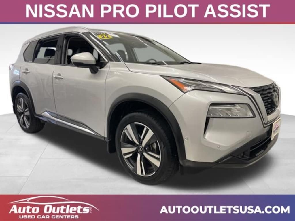 THIS VEHICLE IS LOCATED AT OUR WEBSTER STORE PLEASE CALL 585-671-2277 FOR MORE INFORMATION, ONE OWNER, BLUETOOTH, USB PORT, BACK UP CAMERA, REAR BACK UP SENSORS, NAVIGATION, HEATED SEATS, MOONROOF, BLUETOOTH AUDIO, ADAPTIVE CRUISE CONTROL, REAR CROSS TRAFFIC ALERT, LANE ASSIST, FORWARD COLLISION WARNING, NISSAN PRO PILOT ASSIST, BLIND SPOT MONITOR, MULTIPLE TERRAIN MODES, POWER LIFTGATE, STEERING WHEEL PADDLE SHIFTERS, NISSAN CONNECT, ANDROID AUTO, APPLE CAR PLAY, XM RADIO CAPABLE, BOSE PREMIUM SOUND SYSTEM, ECO BUTTON, SPORT BUTTON, KEYLESS ENTRY, PUSH BUTTON START, TOUCH SCREEN DISPLAY, LEATHER SEATING, DRIVER'S AND PASSENGER'S POWERED SEAT, DRIVER'S MEMORY SEAT, AUTOMATIC HIGH BEAMS, REMOTE START, LANE KEEP ASSIST, STEERING ASSIST, REAR SUTO BRAKING, DRIVER ALERTNESS, NEW FRONT BRAKE PADS AND ROTORS, NEW REAR BRAKE PADS AND ROTORS, AWD, 19" Aluminum Alloy Wheels, 4-Wheel Disc Brakes, 5.604 Axle Ratio, 6 Speakers, ABS brakes, Active Cruise Control, AM/FM Radio, Auto High-beam Headlights, Auto-dimming Rear-View mirror, Automatic temperature control, Bose Premium Audio System, Brake assist, Bumpers: body-color, Chrome Rear Bumper Protector, Delay-off headlights, Driver door bin, Driver vanity mirror, Dual front impact airbags, Dual front side impact airbags, Electronic Stability Control, Emergency communication system: NissanConnect Services, External Ground Lighting, Four wheel independent suspension, Front anti-roll bar, Front Center Armrest, Front dual zone A/C, Front fog lights, Front reading lights, Front, Side & Rear Sonar, Fully automatic headlights, Heated door mirrors, Heated Front Bucket Seats, Heated steering wheel, Illuminated entry, Illuminated Kick Plates, Knee airbag, Leather-Appointed Seat Trim, Low tire pressure warning, Memory seat, Navigation System, Nissan Door To Door Navigation, NissanConnect featuring Apple CarPlay and Android Auto, Occupant sensing airbag, Outside temperature display, Overhead airbag, Overhead console, Panic alarm, Passenger door bin, Passenger vanity mirror, Power door mirrors, Power driver seat, Power Liftgate, Power moonroof, Power passenger seat, Power steering, Power windows, ProPILOT Assist w/Navi-link, Radio data system, Rear air conditioning, Rear anti-roll bar, Rear Door Sunshades, Rear Parking Sensors, Rear reading lights, Rear seat center armrest, Rear side impact airbag, Rear window defroster, Rear window wiper, Remote keyless entry, Roof rack: rails only, Security system, SL Premium Package, Speed-Sensitive Wipers, Split folding rear seat, Spoiler, Steering wheel mounted audio controls, Tachometer, Telescoping steering wheel, Tilt steering wheel, Traction control, Trip computer, Turn signal indicator mirrors, Variably intermittent wipers. Brilliant Silver Metallic 2022 Nissan Rogue SL AWD CVT with Xtronic 1.5L I3 Turbocharged DOHC 12V LEV3-ULEV50 201hp