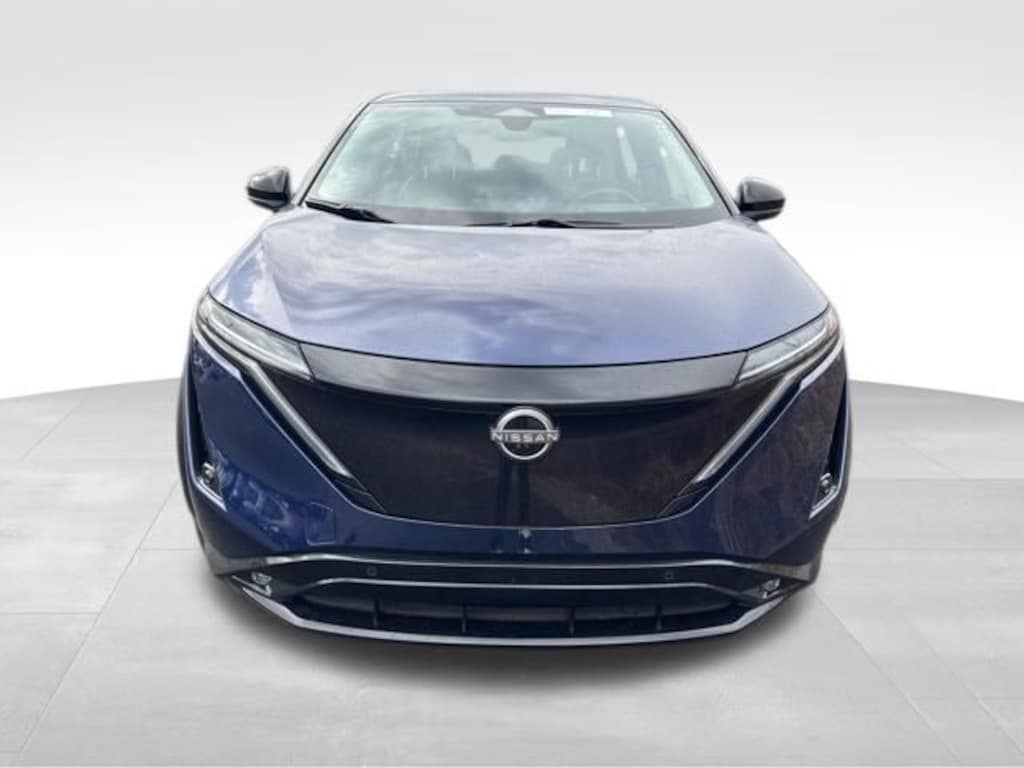 ONE OWNER, LOW MILEAGE, BACK UP CAMERA, REAR BACK UP SENSORS, NAVIGATION, FRONT & REAR HEATED SEATS, HEATED STEERING WHEEL, SUNROOF, WIFI CAPABLE, ADAPTIVE CRUISE CONTROL, LANE ASSIST, FORWARD COLLISION WARNING, NISSAN PRO PILOT ASSIST, BLIND SPOT MONITOR, POWER LIFTGATE, NISSAN CONNECT, ANDROID AUTO, APPLE CAR PLAY, XM RADIO CAPABLE, PUSH BUTTON START, TOUCH SCREEN DISPLAY, DRIVER'S AND PASSENGER'S POWERED SEAT, DRIVER'S MEMORY SEAT, 19" Alloy Wheels, Automatic temperature control, Brake assist, Electronic Stability Control, Emergency communication system: NissanConnect EV & Services, Garage door transmitter: HomeLink, Illuminated entry, Illuminated Kick Plates, Navigation system: Nissan Door to Door Connected Navigation, Nissan USB Charging Cable Set, Outside temperature display, Power Liftgate, Power moonroof. Deep Ocean Blue Pearl/Black Diamond Pearl 2024 Nissan Ariya EVOLVE+ e-4ORCE 97/86 City/Highway MPG 4D Sport Utility AWD CVT Electric Motor