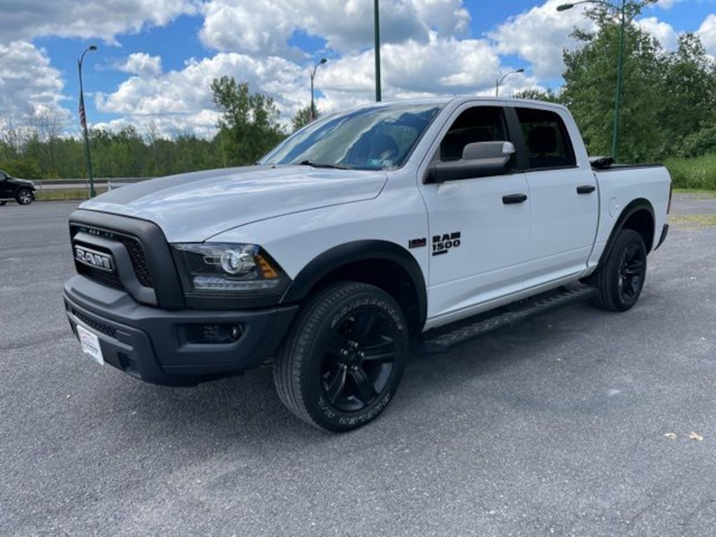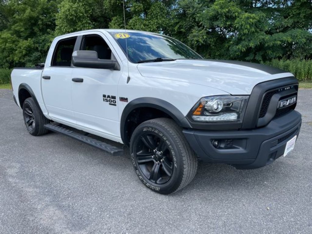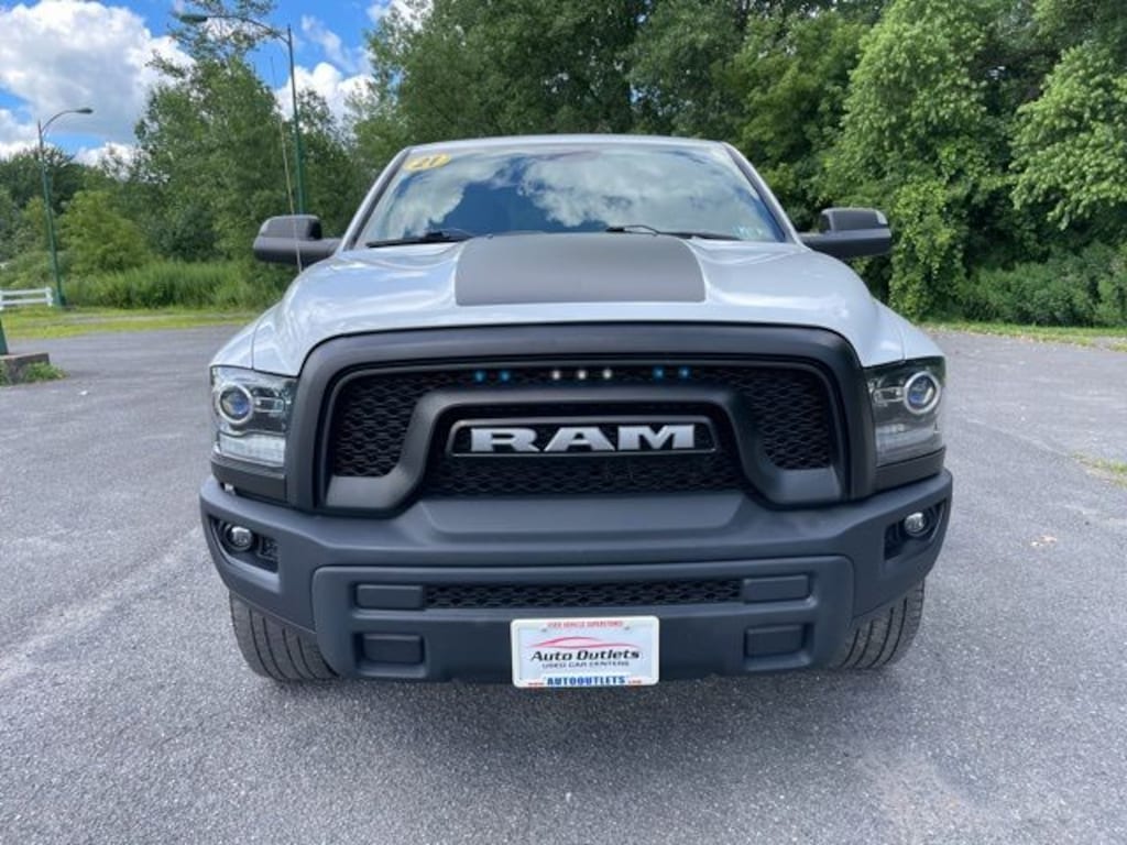 ONE OWNER, BLUETOOTH, USB & AUX PORT, USB PORT, BACK UP CAMERA, REAR BACK UP SENSORS, BLUETOOTH AUDIO, POWER OUTLET, UCONNECT, XM RADIO CAPABLE, TOUCH SCREEN DISPLAY, DRIVER'S POWERED SEAT, REMOTE START, 2nd Row In Floor Storage Bins, 4-Wheel Disc Brakes, 40/20/40 Split Bench Seat, 4x4 Flat Black Badge, 6 Speakers, ABS brakes, Active Grille Shutters, Air Conditioning, AM/FM radio: SiriusXM, Bi-Function Halogen Projector Headlamps, Black Door Handles, Black Exterior Mirrors, Black Exterior Truck Badging, Black Grille w/RAM Lettering, Black Headlamp Filler Panel, Black Powder Coated Front Bumper, Black Powder Coated Rear Bumper, Black RAM Head Tailgate Badge, Black Wheel Flares, Brake assist, Bumpers: chrome, Cloth 40/20/40 Bench Seat (Fleet), Compass, Delay-off headlights, Driver door bin, Dual front impact airbags, Dual front side impact airbags, Dual Rear Exhaust w/Bright Tips, Electronic Shift, Electronic Stability Control, Exterior Mirrors Courtesy Lamps, Exterior Mirrors w/Heating Element, Exterior Mirrors w/Supplemental Signals, Front anti-roll bar, Front Armrest w/3 Cupholders, Front Center Armrest w/Storage, Front reading lights, Front wheel independent suspension, Front Wheel Well Liners, Fully automatic headlights, GPS Antenna Input, Heated door mirrors, Illuminated entry, Integrated Voice Command w/Bluetooth, Low tire pressure warning, MOPAR Spray In Bedliner, Occupant sensing airbag, Outside temperature display, Overhead airbag, Overhead console, Panic alarm, ParkSense Rear Park Assist System, ParkView Rear Back-Up Camera, Passenger door bin, Passenger vanity mirror, Power Black Trailer Tow Mirrors, Power door mirrors, Power steering, Power windows, Quick Order Package 26F Warlock, Radio data system, Radio: Uconnect 3 w/5" Display, Raised Ride Height, Rear anti-roll bar, Rear Extra HD Shock Absorbers, Rear seat center armrest, Rear step bumper, Remote keyless entry, Remote Start & Security Alarm Group, Remote USB Port - Charge Only, Rotary Shifter-Black, Security Alarm, Semi-Gloss Black Hub, Speed control, Sport Tail Lamps, Storage Tray, Tachometer, Tilt steering wheel, Tip Start, Traction control, Trailer Tow Mirrors, Trip computer, Variably intermittent wipers, Warlock, Warlock Interior Accents, Wheels: 20" x 9" Semi-Gloss Black Aluminum. Bright White Clearcoat 2021 Ram 1500 Classic Warlock 4WD 8-Speed Automatic HEMI 5.7L V8 Multi Displacement VVT