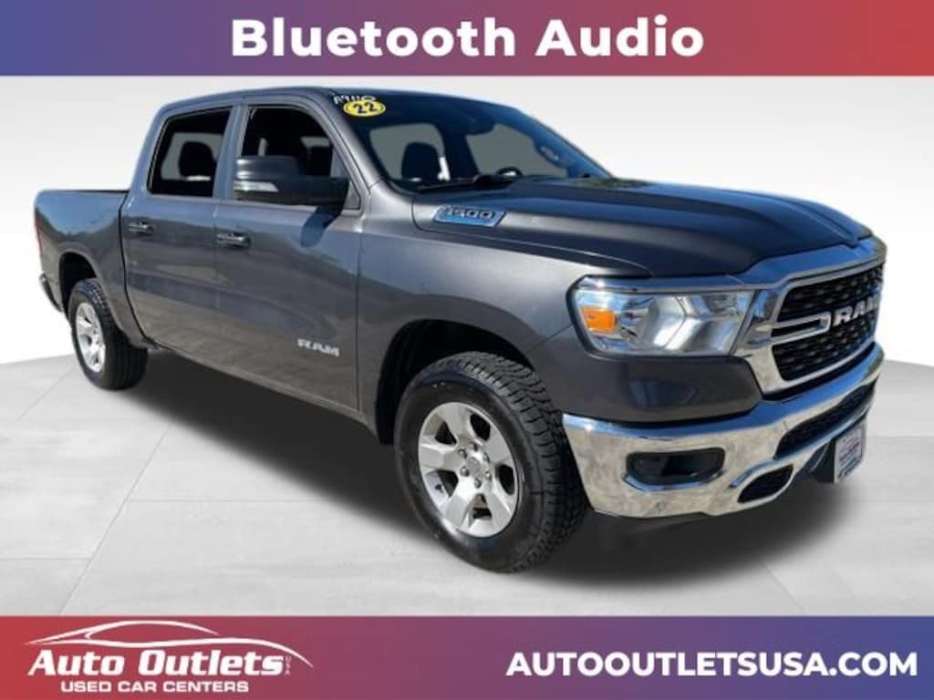 BLUETOOTH, USB & AUX PORT, USB PORT, BACK UP CAMERA, BLUETOOTH AUDIO, UCONNECT, XM RADIO CAPABLE, 911 ASSIST, AUTO STOP/START TECHNOLOGY, KEYLESS ENTRY, PUSH BUTTON START, DRIVER'S POWERED SEAT, 2nd Row In Floor Storage Bins, 3 Rear Seat Head Restraints, 3.21 Rear Axle Ratio, 4 Way Front Headrests, 4-Wheel Disc Brakes, 48V Belt Starter Generator, 4G LTE Wi-Fi Hot Spot, 6 Speakers, 8.4" Touchscreen Display, ABS brakes, AM/FM radio, Anti-Spin Differential Rear Axle, Apple CarPlay, Auto-Dimming Exterior Driver Mirror, Auto-Dimming Rear-View Mirror, Big Horn Badge, Big Horn Level A Equipment Group (DISC), Black Exterior Mirrors, Black Premium Power Mirrors (GUL), Bluetooth Handsfree Phone & Audio, Brake assist, Bumpers: chrome, Class IV Receiver Hitch, Cloth Bench Seat, Cluster 3.5" TFT Color Display, Cluster 7.0" TFT Color Display, Compass, Connectivity - US/Canada, Convex Wide-Angle Mirror Insert, Delay-off headlights, Driver door bin, Dual front impact airbags, Dual front side impact airbags, Electronic Stability Control, Emergency communication system: SiriusXM Guardian, Exterior Mirrors Courtesy Lamps, Exterior Mirrors w/Supplemental Signals, Foam Bottle Insert (Door Trim Panel), For More Info, Call 800-643-2112, Front anti-roll bar, Front Center Armrest w/Storage, Front fog lights, Front License Plate Bracket, Front reading lights, Front Seat Back Map Pockets, Front wheel independent suspension, Fully automatic headlights, Global Telematics Box Module (TBM), Glove Box Lamp, Google Android Auto, GPS Antenna Input, Heated door mirrors, Illuminated entry, Integrated Center Stack Radio, Integrated Voice Command w/Bluetooth, Leather steering wheel, Low tire pressure warning, Manufacturer's Statement of Origin, Occupant sensing airbag, Outside temperature display, Overhead airbag, Overhead console, Panic alarm, ParkView Rear Back-Up Camera, Passenger door bin, Passenger vanity mirror, Power 2-Way Driver Lumbar Adjust, Power 8-Way Driver Seat, Power Adjustable Pedals, Power door mirrors, Power steering, Power windows, Quick Order Package 23Z Big Horn, Radio data system, Radio: Uconnect 5 W w/8.4" Display, Rear 60/40 Folding Seat, Rear anti-roll bar, Rear Dome w/On/Off Switch Lamp, Rear Power Sliding Window, Rear seat center armrest, Rear step bumper, Rear Underseat Compartment Storage, Rear Underseat Compartment Storage (DISC), Rear Window Defroster, Remote keyless entry, Speed control, Split folding rear seat, Steering wheel mounted audio controls, Sun Visors w/Illuminated Vanity Mirrors, Tachometer, Telescoping steering wheel, Tilt steering wheel, Traction control, Trip computer, Universal Garage Door Opener, USB Host Flip, Variably intermittent wipers, Wheels: 18" x 8" Cast-Aluminum Painted. Granite Crystal Metallic Clearcoat 2022 Ram 1500 Big Horn/Lone Star 4WD 8-Speed Automatic 3.6L V6 24V VVT