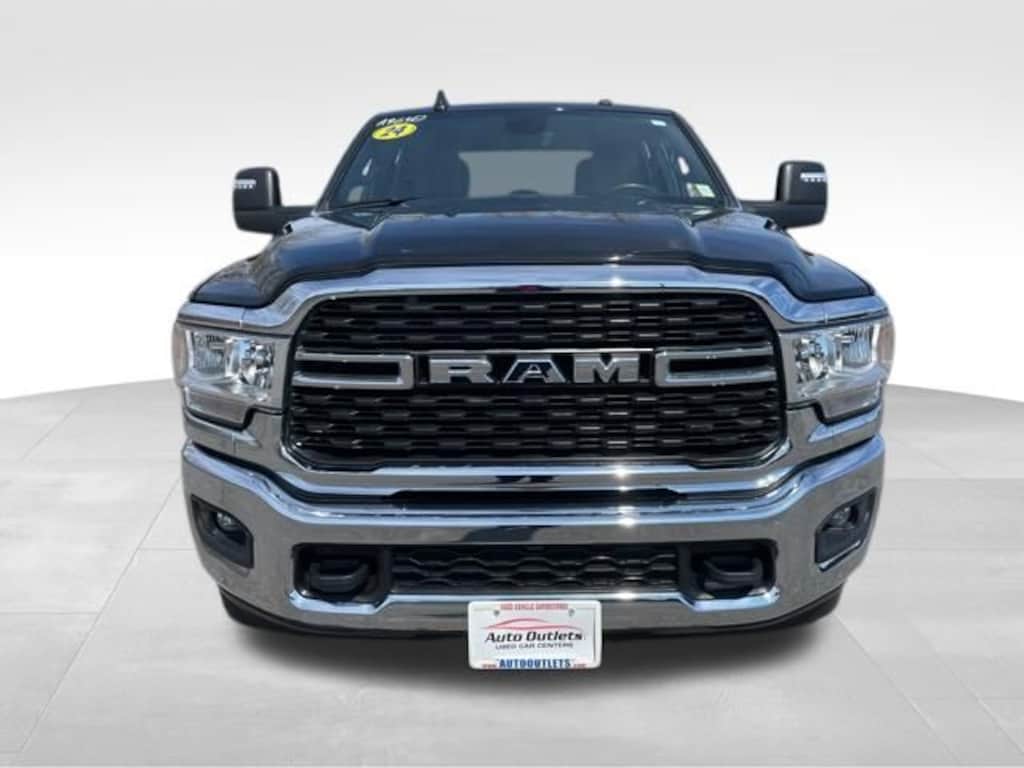 ONE OWNER, LOW MILEAGE, BLUETOOTH, USB PORT, BACK UP CAMERA, BLUETOOTH AUDIO, WIFI CAPABLE, UCONNECT, ANDROID AUTO, APPLE CAR PLAY, XM RADIO CAPABLE, 911 ASSIST, PUSH BUTTON START, TOUCH SCREEN DISPLAY, DRIVER'S POWERED SEAT, REAR SEAT ALERT, 2 Way Rear Headrest Seat, 2nd Row In Floor Storage Bins, 4 Way Front Headrests, 4-Wheel Disc Brakes, 40/20/40 Split Bench Seat, 4G LTE Wi-Fi Hot Spot, 8.4" Touchscreen Display, 9 Alpine Speakers w/Subwoofer, ABS brakes, Active Noise Control System, Air Conditioning, Anti-Spin Differential Rear Axle, Apple CarPlay, Auto Power-Folding Mirrors, Bed Utility Group, Big Horn IP Badge, Black Exterior Mirrors, Bluetooth Handsfree Phone & Audio, Brake assist, Center Hub, Center Stack Storage Drawer, Chrome Flat Cab-Length Side Steps, Compass, Connectivity - US/Canada, Delay-off headlights, Driver door bin, Dual front impact airbags, Dual front side impact airbags, Dual Glove Boxes, Electronic Stability Control, Electronically Controlled Throttle, Emergency communication system: SiriusXM Guardian, Exterior Mirrors Courtesy Lamps, Exterior Mirrors w/Heating Element, Exterior Mirrors w/Supplemental Signals, Foam Bottle Insert (Door Trim Panel), Footwell Courtesy Lamp, Forward & Reverse Utility Lights, Front anti-roll bar, Front Armrest w/Cupholders, Front Center Armrest w/Storage, Front Center Seat Cushion Storage, Front Fog Lamps, Front License Plate Bracket, Front reading lights, Front Seat Back Map Pockets, Fully automatic headlights, Global Telematics Box Module (TBM), Glove Box Lamp, Google Android Auto, GPS Antenna Input, Heated door mirrors, Illuminated entry, Integrated Center Stack Radio, Integrated Voice Command w/Bluetooth, Leather Wrapped Steering Wheel, LED Bed Lighting, Level 1 Equipment Group, Locking Lower Glove Box, Low tire pressure warning, Manual Adjust 4-Way Front Passenger Seat, Manufacturer's Statement of Origin, Mirror Running Lights, MOPAR Deployable Bed Step, MOPAR Spray In Bedliner, Occupant sensing airbag, Outside temperature display, Overhead airbag, Overhead console, Panic alarm, ParkView Rear Back-Up Camera, Passenger door bin, Passenger vanity mirror, Power 2-Way Driver Lumbar Adjust, Power Adjust 8-Way Driver Seat, Power Adjust Mirrors, Power Adjustable Convex Aux Mirrors, Power door mirrors, Power Heated Fold Telescope Mirrors, Power steering, Power Telescoping Mirrors, Power windows, Premium Cloth 40/20/40 Bench Seat, Protection Group, Quick Order Package 2GZ Big Horn, Radio data system, Radio: Uconnect 5 W w/8.4" Display (A62), Rear 60/40 Folding Seat, Rear anti-roll bar, Rear Dome w/On/Off Switch Lamp, Rear seat center armrest, Rear step bumper, Remote keyless entry, Remote USB Port - Charge Only, Selectable Tire Fill Alert, SiriusXM Radio Service, Speed control, Steering Wheel Mounted Audio Controls, Storage Tray, Tachometer, Tilt steering wheel, Tip Start, Tow Hooks, Traction control, Trip computer, Turn signal indicator mirrors, Variably intermittent wipers, Wheels: 18" x 8.0" Polished Aluminum. Diamond Black Crystal Pearlcoat 2024 Ram 2500 Big Horn 4WD 8-Speed Automatic 6.4L V8
