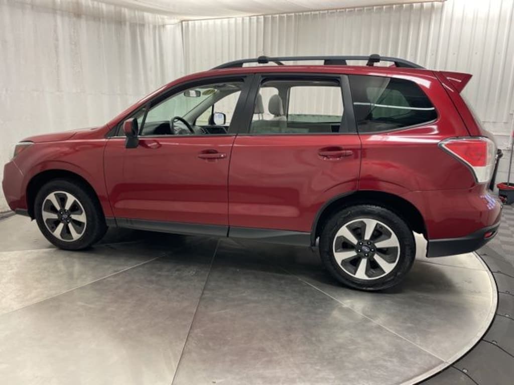 ONE OWNER, LOW MILEAGE, BLUETOOTH, USB & AUX PORT, BACK UP CAMERA, HEATED SEATS, MOONROOF, BLUETOOTH AUDIO, SUBARU STARLINK, XM RADIO CAPABLE, 911 ASSIST, TOUCH SCREEN DISPLAY, MIRRORLINK, 4-Wheel Disc Brakes, 6 Speakers, ABS brakes, Air Conditioning, All-Weather Package, AM/FM radio: SiriusXM, Automatic temperature control, Brake assist, Bumpers: body-color, CD player, Cloth Upholstery, Driver door bin, Driver vanity mirror, Dual front impact airbags, Dual front side impact airbags, Electronic Stability Control, Emergency communication system: STARLINK, Exterior Parking Camera Rear, Four wheel independent suspension, Front anti-roll bar, Front Bucket Seats, Front Center Armrest, Front reading lights, Heated Exterior Mirrors, Heated Front Seats, Illuminated entry, Knee airbag, Low tire pressure warning, Occupant sensing airbag, Outside temperature display, Overhead airbag, Overhead console, Panic alarm, Passenger door bin, Passenger vanity mirror, Power door mirrors, Power driver seat, Power moonroof, Power steering, Power windows, Radio data system, Radio: Subaru Starlink 7.0" Multimedia Plus System, Rear anti-roll bar, Rear seat center armrest, Rear window defroster, Rear window wiper, Remote keyless entry, Roof rack: rails only, Security system, Speed control, Split folding rear seat, Spoiler, Steering wheel mounted audio controls, Tachometer, Telescoping steering wheel, Tilt steering wheel, Traction control, Trip computer, Variably intermittent wipers, Windshield Wiper De-Icer. Venetian Red Pearl 2018 Subaru Forester 2.5i Premium AWD Lineartronic CVT 2.5L 4-Cylinder DOHC 16V VVT