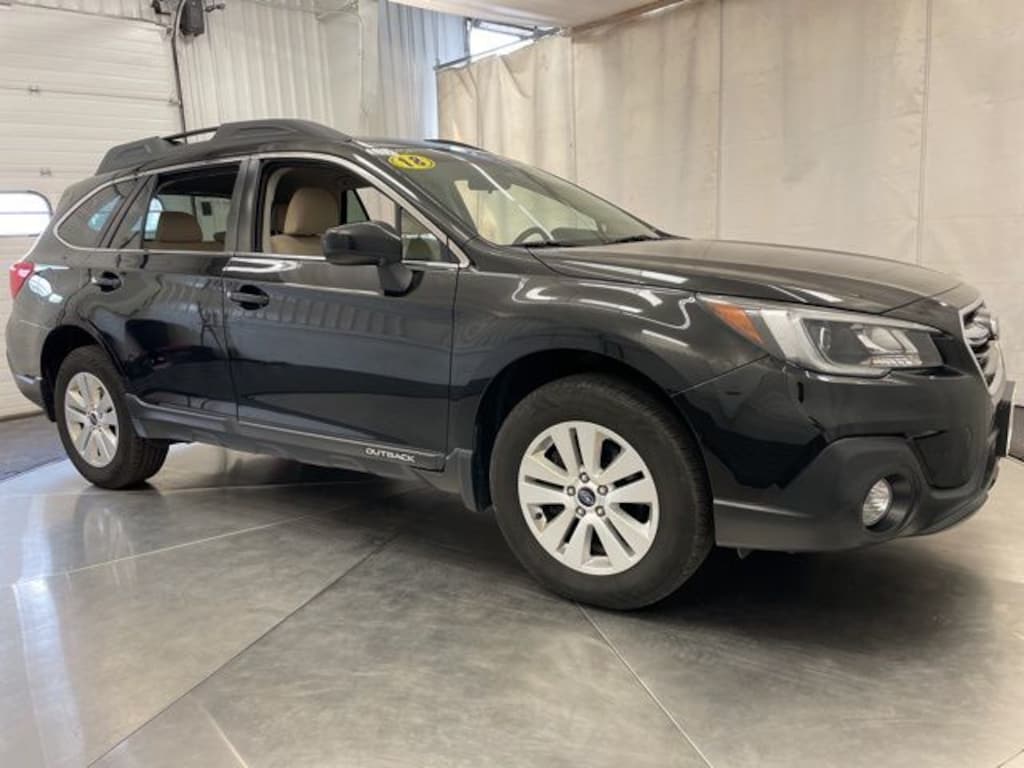 LOW MILEAGE, BLUETOOTH, USB & AUX PORT, USB PORT, BACK UP CAMERA, HEATED SEATS, BLUETOOTH AUDIO, WIFI CAPABLE, POWER OUTLET, STEERING WHEEL PADDLE SHIFTERS, SUBARU STARLINK, ANDROID AUTO, APPLE CAR PLAY, XM RADIO CAPABLE, 911 ASSIST, TOUCH SCREEN DISPLAY, DRIVER'S POWERED SEAT, 17" x 7.0" Aluminum Alloy w/Silver Finish Wheels, 4-Wheel Disc Brakes, 6 Speakers, ABS brakes, AM/FM radio: SiriusXM, Anti-whiplash front head restraints, Apple CarPlay/Android Auto, Automatic temperature control, Brake assist, Bumpers: body-color, CD player, Cloth Upholstery, Driver door bin, Driver vanity mirror, Dual front impact airbags, Dual front side impact airbags, Electronic Stability Control, Emergency communication system: STARLINK, Exterior Parking Camera Rear, Four wheel independent suspension, Front anti-roll bar, Front Center Armrest w/Storage, Front dual zone A/C, Front fog lights, Front reading lights, Fully automatic headlights, Heated door mirrors, Heated Reclining Front Bucket Seats, Illuminated entry, Leather Shift Knob, Low tire pressure warning, Occupant sensing airbag, Outside temperature display, Overhead airbag, Overhead console, Panic alarm, Passenger door bin, Passenger vanity mirror, Power door mirrors, Power driver seat, Power steering, Power windows, Radio: Subaru STARLINK 8.0" Multimedia Plus System, Rear anti-roll bar, Rear seat center armrest, Rear window defroster, Rear window wiper, Remote keyless entry, Roof rack, Security system, Smartphone Integration, Speed control, Speed-sensing steering, Split folding rear seat, Spoiler, Standard Model, Steering wheel mounted audio controls, Steering Wheel Paddle Shift Control Switches, Tachometer, Telescoping steering wheel, Tilt steering wheel, Traction control, Trip computer, Variably intermittent wipers, Vehicle Information Display. Crystal Black Silica 2018 Subaru Outback 2.5i Premium AWD CVT Lineartronic 2.5L 4-Cylinder DOHC 16V