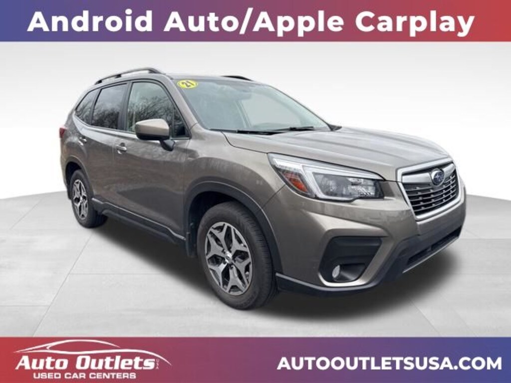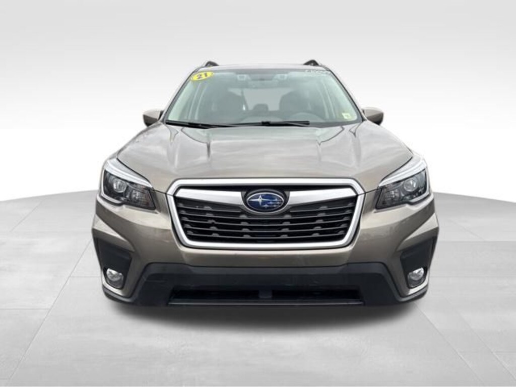 THIS VEHICLE IS LOCATED AT OUR WEBSTER STORE PLEASE CALL 585-671-2277 FOR MORE INFORMATION, ONE OWNER, LOW MILEAGE, BLUETOOTH, USB & AUX PORT, BACK UP CAMERA, HEATED SEATS, SUNROOF, WIFI CAPABLE, ADAPTIVE CRUISE CONTROL, LANE ASSIST, FORWARD COLLISION WARNING, SUBARU STARLINK, ANDROID AUTO, APPLE CAR PLAY, XM RADIO CAPABLE, PUSH BUTTON START, TOUCH SCREEN DISPLAY, DRIVER'S POWERED SEAT, 6 Speakers, Alloy wheels, Brake assist, CD player, Cloth Upholstery, Electronic Stability Control, Emergency communication system: STARLINK Safety and Security (Subscription Required), Exterior Parking Camera Rear, Heated door mirrors, Illuminated entry, Outside temperature display, Panic alarm, Power moonroof: Panoramic, Radio: Subaru Starlink 6.5" Multimedia Plus System, Roof rack: rails only, Security system, Standard Model, STARLINK/Apple CarPlay/Android Auto. Sepia Bronze Metallic 2021 Subaru Forester Premium 26/33 City/Highway MPG 4D Sport Utility AWD Lineartronic CVT 2.5L 4-Cylinder DOHC 16V VVT