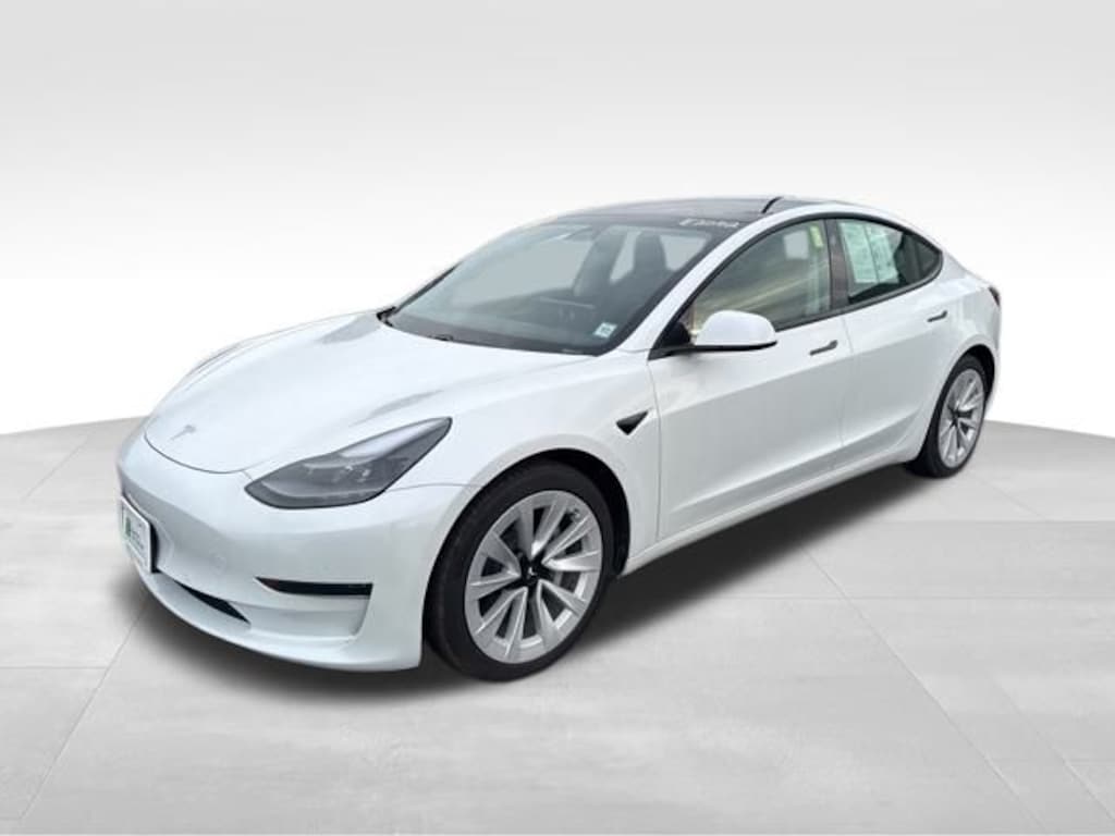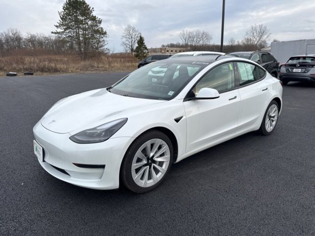 ONE OWNER, LOW MILEAGE, BLUETOOTH, USB-C PORT, USB PORT, BACK UP CAMERA, REAR BACK UP SENSORS, NAVIGATION, HEATED SEATS, BLUETOOTH AUDIO, WIFI CAPABLE, LANE ASSIST, REAR CROSS TRAFFIC ALERT, FORWARD COLLISION WARNING, BLIND SPOT MONITOR, XM RADIO CAPABLE, 911 ASSIST, LARGE TOUCH SCREEN DISPLAY, TOUCH SCREEN DISPLAY, LEATHER SEATING, DRIVER'S POWERED SEAT, DRIVER'S AND PASSENGER'S POWERED SEAT, DRIVER'S MEMORY SEAT, WIRELESS CELLPHONE CHARGING, 8 Speakers, Air Conditioning, Automatic temperature control, Brake assist, Electronic Stability Control, Exterior Parking Camera Rear, Four wheel independent suspension, Front dual zone A/C, Genuine wood dashboard insert, Heated steering wheel, Illuminated entry, Lane Departure Warning System, Navigation System, Outside temperature display, Radio data system, Radio: Upgraded Audio System, Rear window defroster, Security system, Speed-sensing steering, Traction control. White 2021 Tesla Model 3 Standard Range Plus 150/133 City/Highway MPG 4D Sedan RWD 1-Speed Automatic Electric Motor