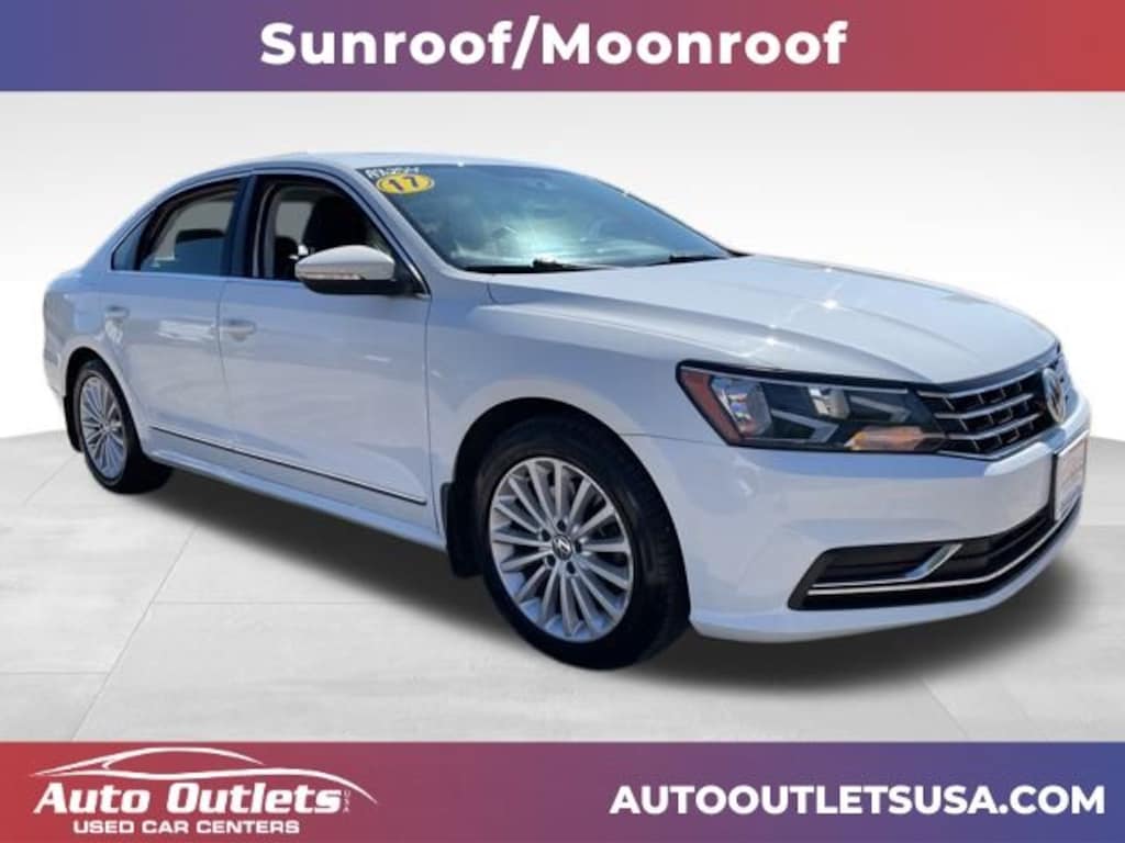 LOW MILEAGE, BLUETOOTH, USB, AUX & SD CARD PORT, BACK UP CAMERA, HEATED SEATS, MOONROOF, BLUETOOTH AUDIO, REAR CROSS TRAFFIC ALERT, FORWARD COLLISION WARNING, BLIND SPOT MONITOR, ANDROID AUTO, APPLE CAR PLAY, XM RADIO CAPABLE, 911 ASSIST, KEYLESS ENTRY, PUSH BUTTON START, TOUCH SCREEN DISPLAY, LEATHER SEATING, DRIVER'S POWERED SEAT, MIRRORLINK, Titan Black w/V-Tex Leatherette Seating Surfaces, 4-Wheel Disc Brakes, 6 Speakers, ABS brakes, AM/FM radio: SiriusXM, Automatic temperature control, Brake assist, Bumpers: body-color, CD player, Compass, Delay-off headlights, Driver door bin, Driver vanity mirror, Dual front impact airbags, Dual front side impact airbags, Electronic Stability Control, Emergency communication system: VW Car-Net, Exterior Parking Camera Rear, Four wheel independent suspension, Front anti-roll bar, Front Center Armrest, Front dual zone A/C, Front reading lights, Fully automatic headlights, Halogen Front Fog Lights, Heated door mirrors, Heated Front Bucket Seats, Illuminated entry, Leather Shift Knob, Leather steering wheel, LED Headlights w/LED Daytime Running Lights (DRL), LED Tail Lights, Low tire pressure warning, Occupant sensing airbag, Outside temperature display, Overhead airbag, Overhead console, Panic alarm, Passenger door bin, Passenger vanity mirror, Power door mirrors, Power driver seat, Power moonroof, Power steering, Power windows, Radio data system, Rear anti-roll bar, Rear reading lights, Rear seat center armrest, Rear window defroster, Remote keyless entry, Roadside Assistance Kit, SE Lighting Package, Speed control, Speed-sensing steering, Split folding rear seat, Steering wheel mounted audio controls, Tachometer, Telescoping steering wheel, Tilt steering wheel, Traction control, Trip computer, Turn signal indicator mirrors, V-Tex Leatherette Seating Surfaces, Variably intermittent wipers, Wheels: 17" Knoxville Alloy. Pure White 2017 Volkswagen Passat 1.8T SE FWD 6-Speed Automatic with Tiptronic 1.8L TSI